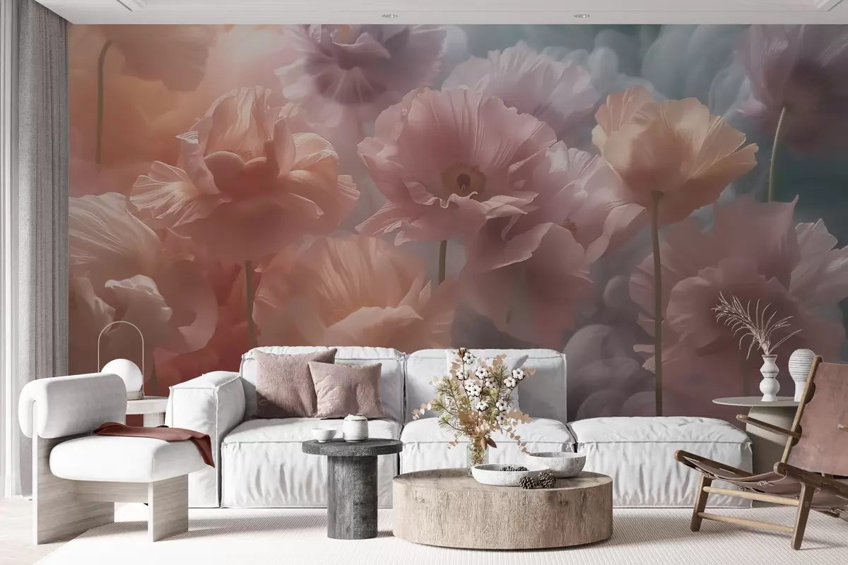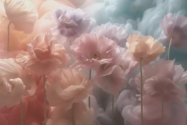 Фотошпалери Легкі квіти з напівпрозорими пелюстками у м'якому ранковому світлі w09847