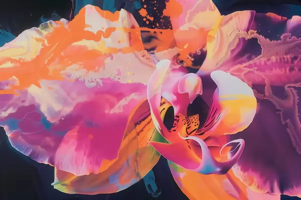 Фотошпалери Яскрава абстрактна квітка орхідеї з насиченими кольорами та динамічними формами у стилі акварелі w09855