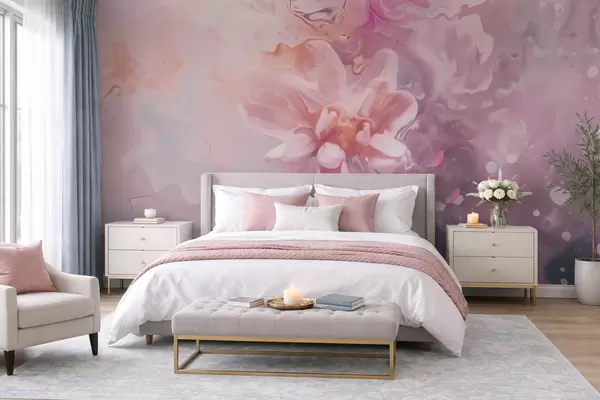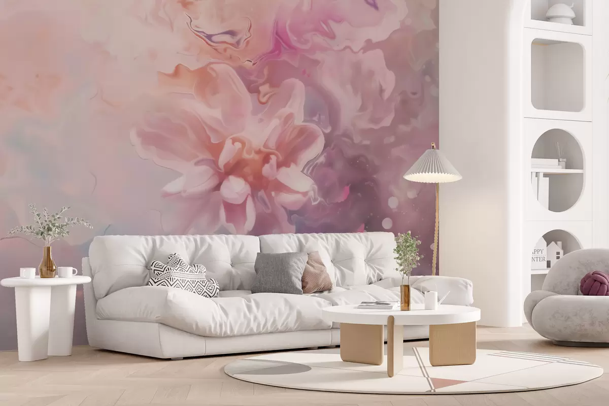 Фотошпалери Абстрактна композиція з квіткою та ніжними рожевими розмивами у стилі акварелі w09859