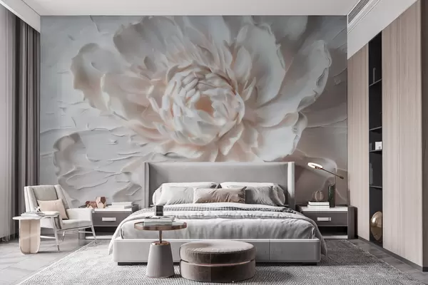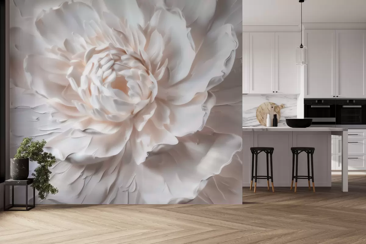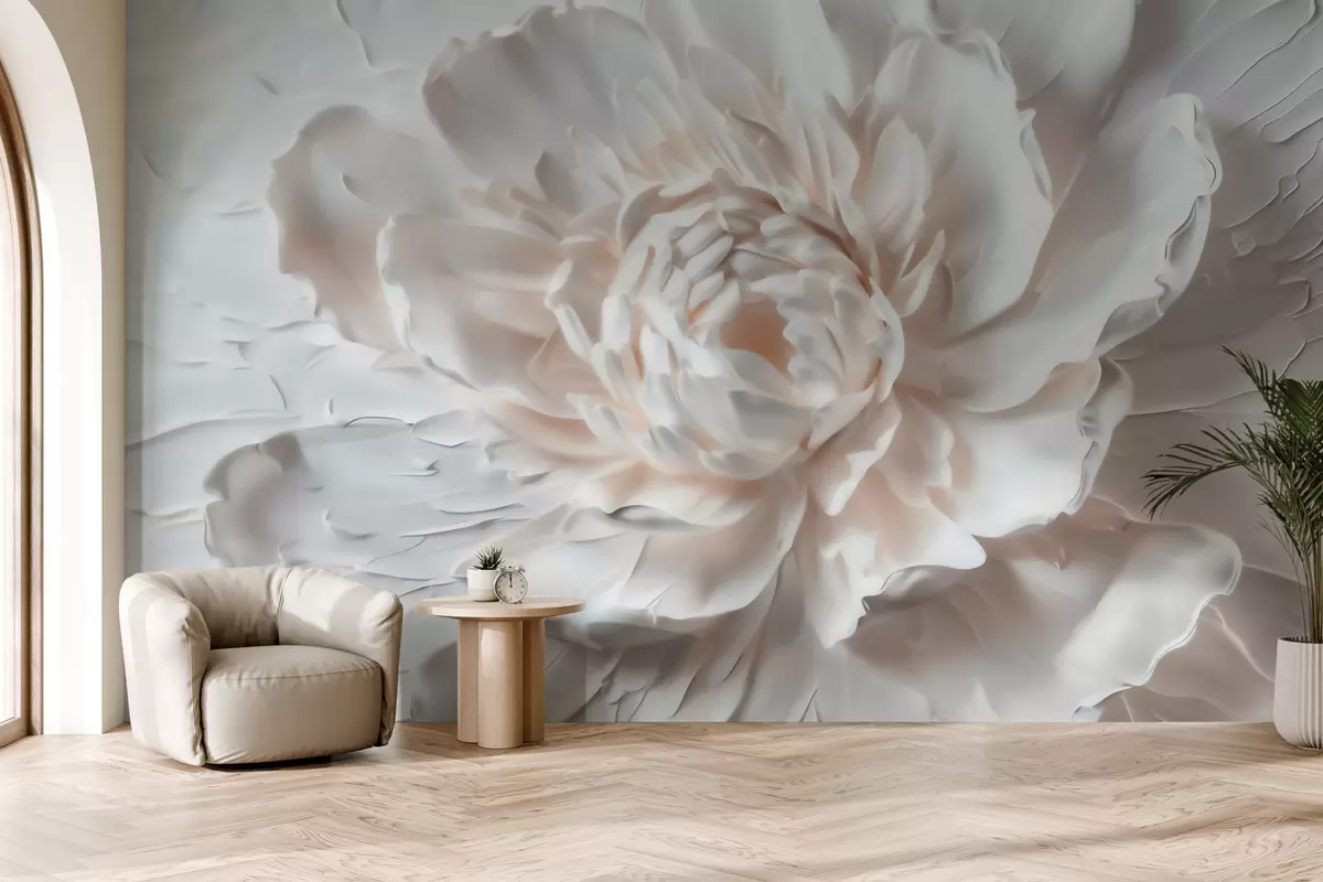Фотошпалери Ніжний квітковий барельєф із гладенькими пелюстками у світлих тонах w09861