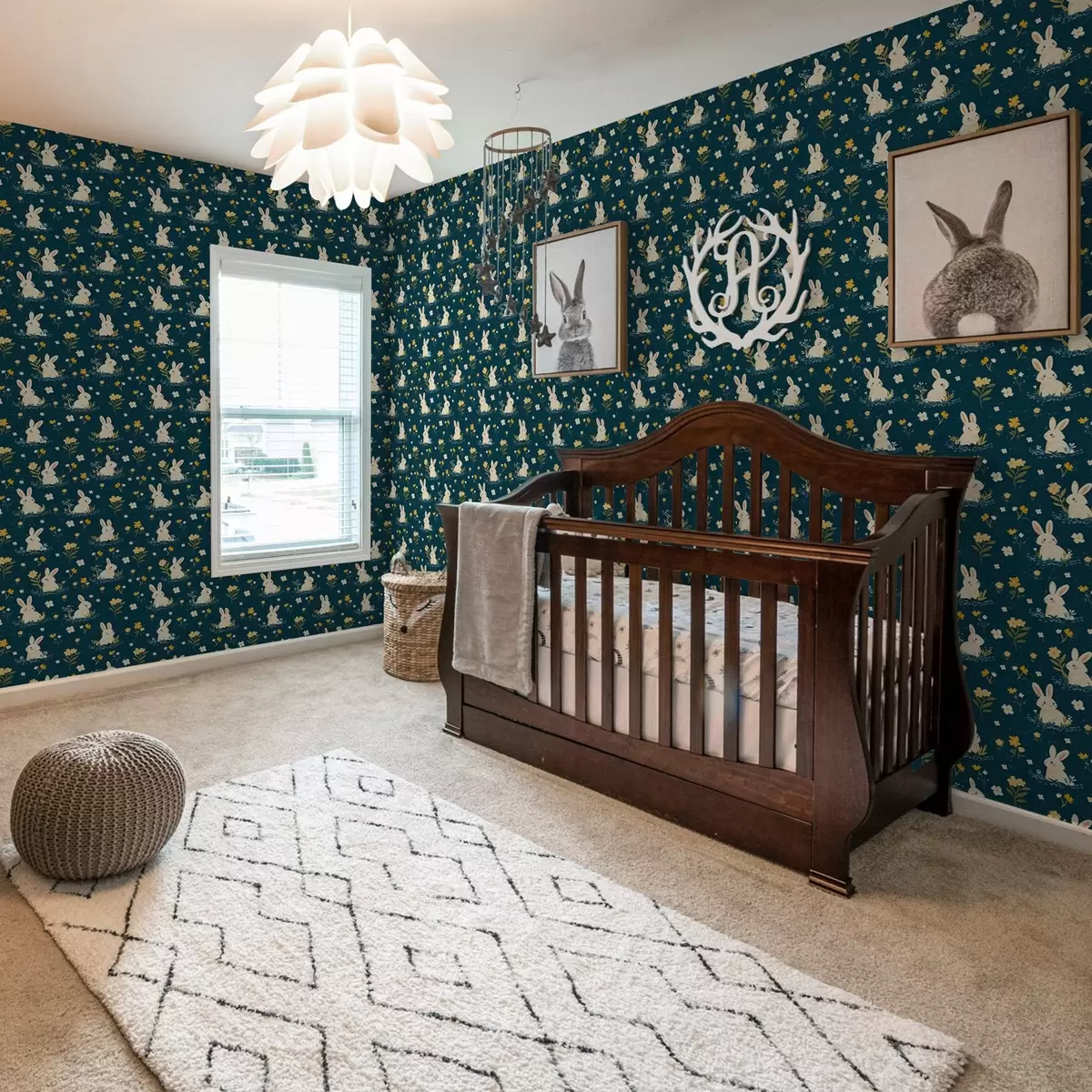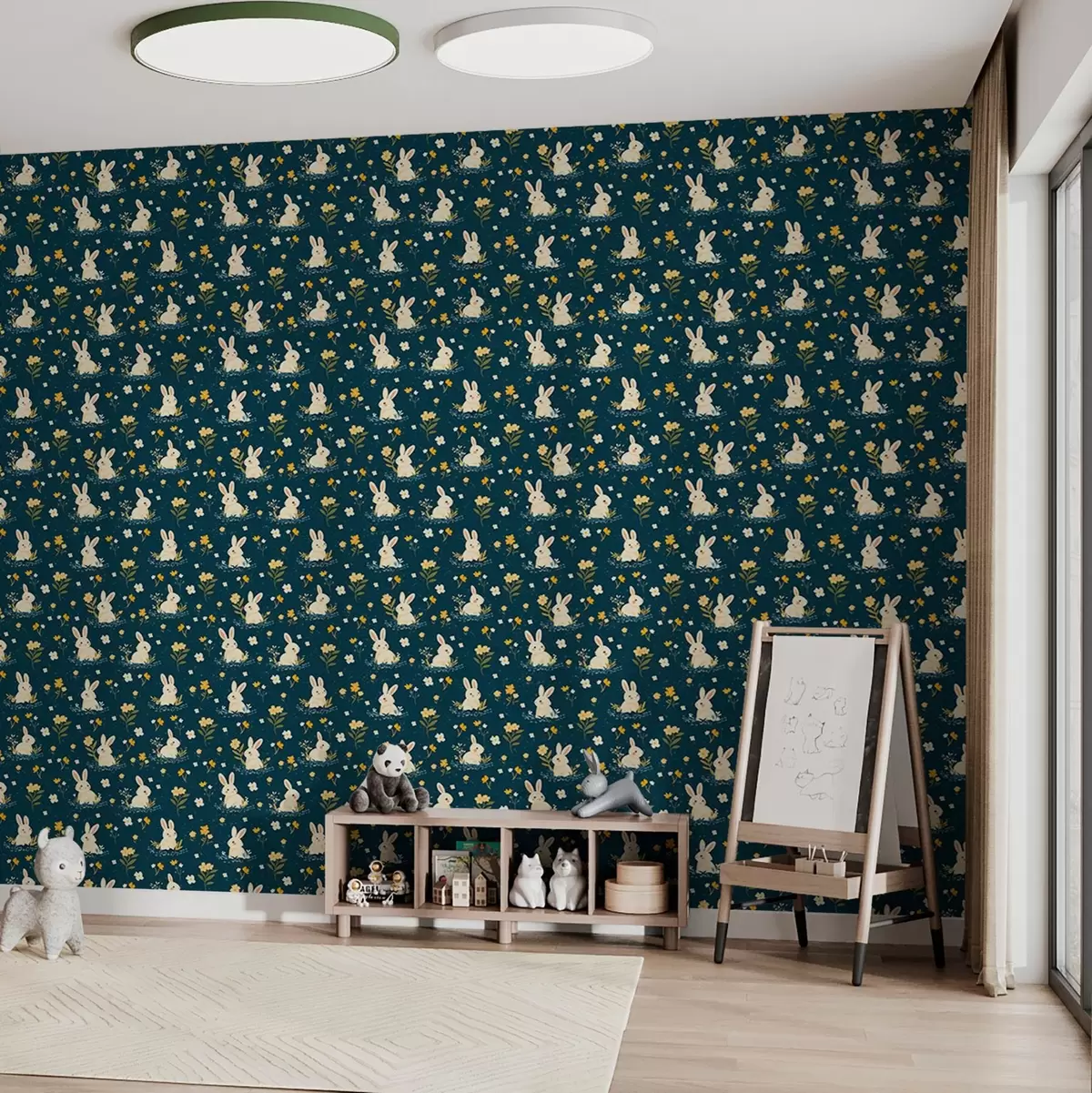 Шпалери Кролики в траві та квітах на темному тлі Nr. a00080
