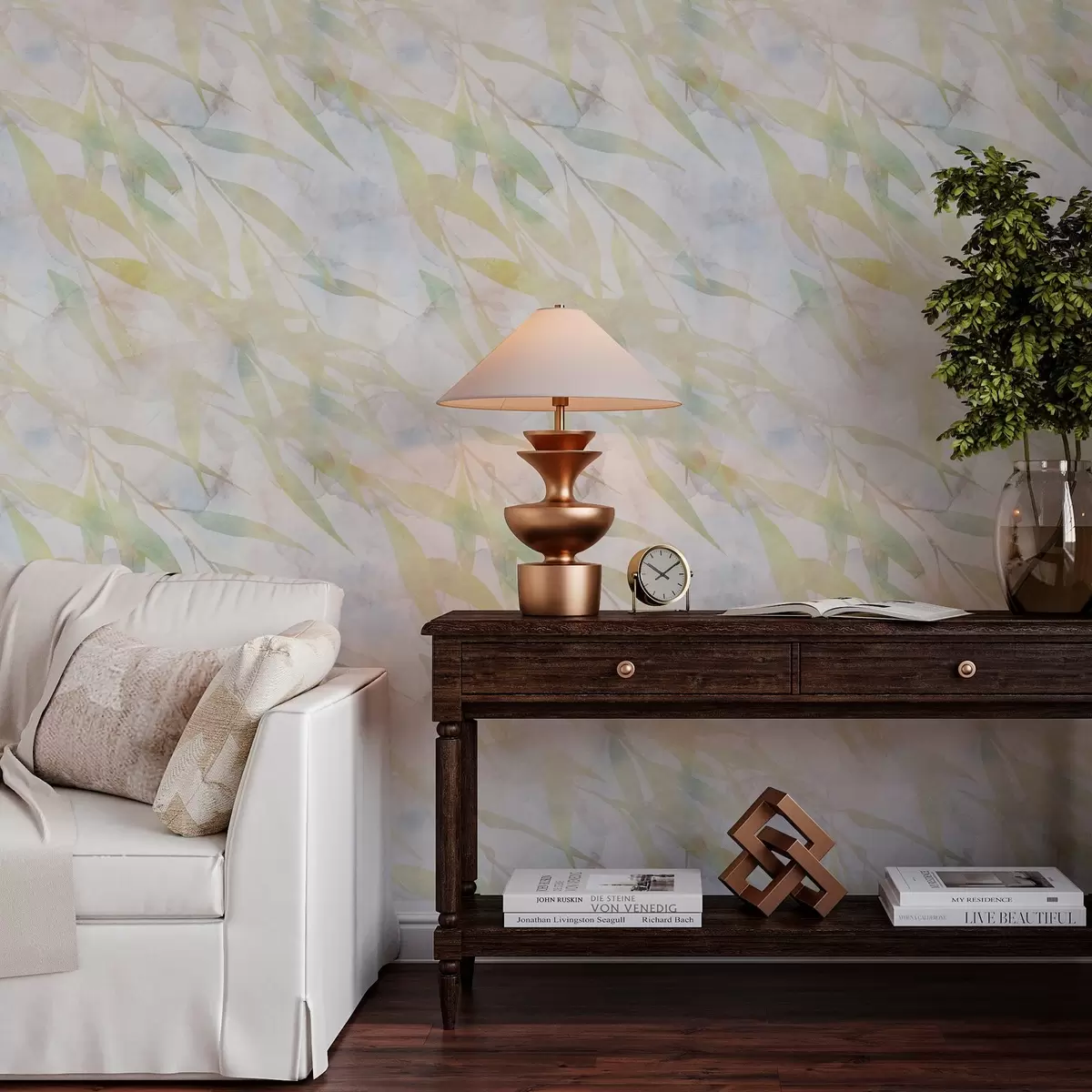 Шпалери Жовто-зелені гілки з листям на вітрі Nr. a00097