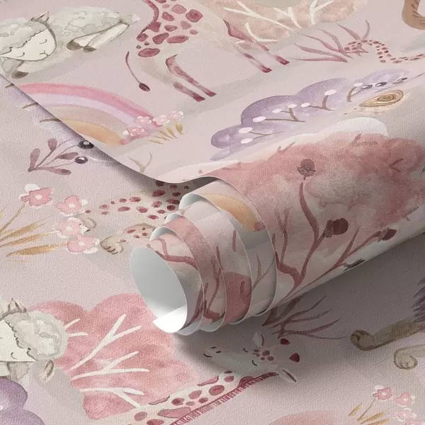 Шпалери Левенята, жирафи та веселка в пастельному лісі Nr. a00112