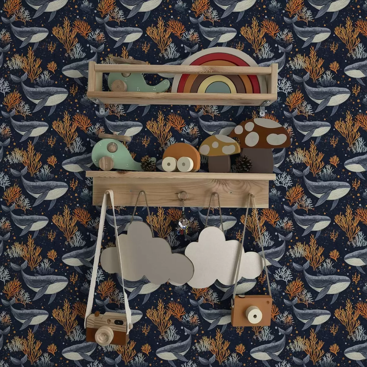 Шпалери Морські кити та корали на темному тлі Nr. a00116