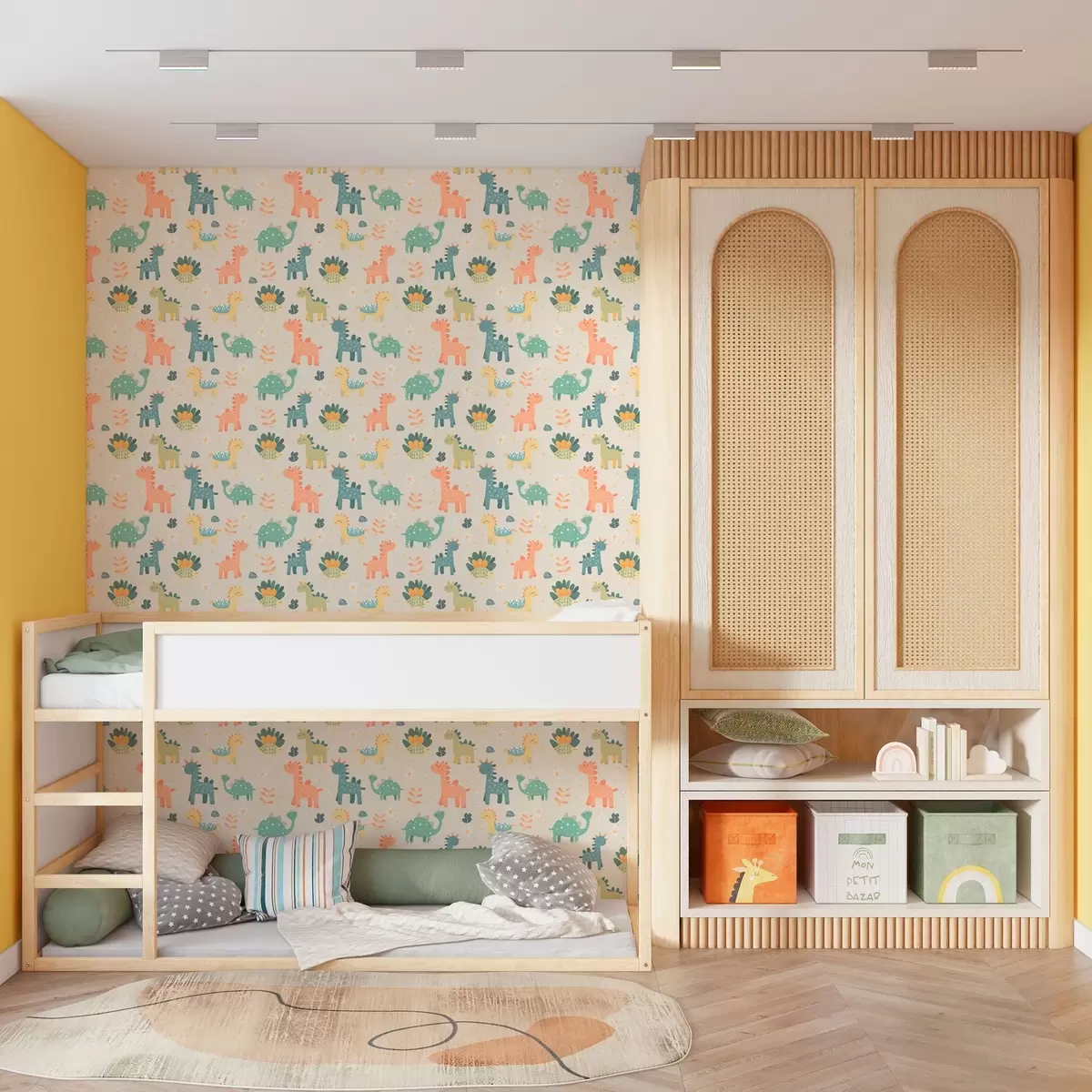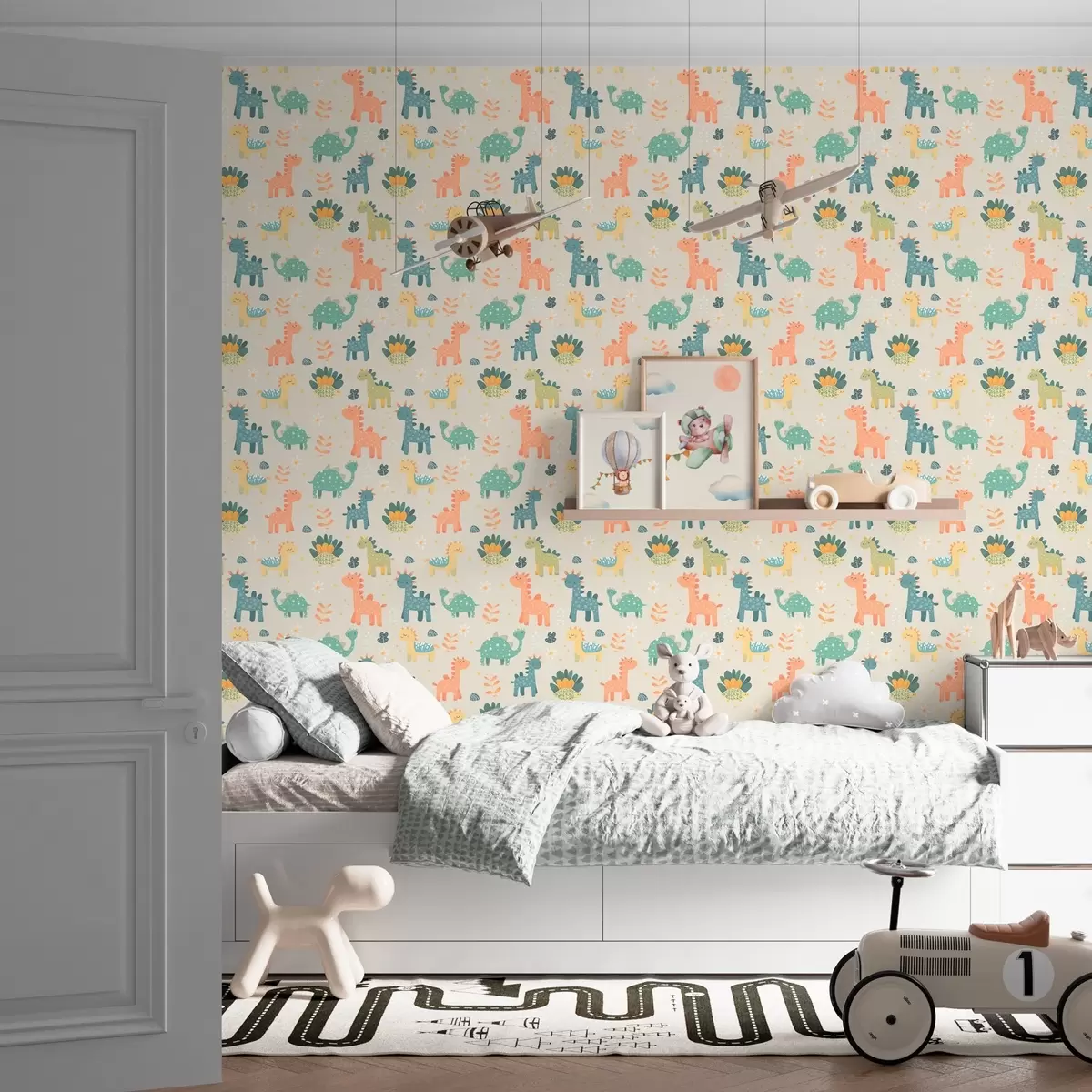 Шпалери Дитячі динозаври в пастельних тонах на світлому фоні Nr. a00125