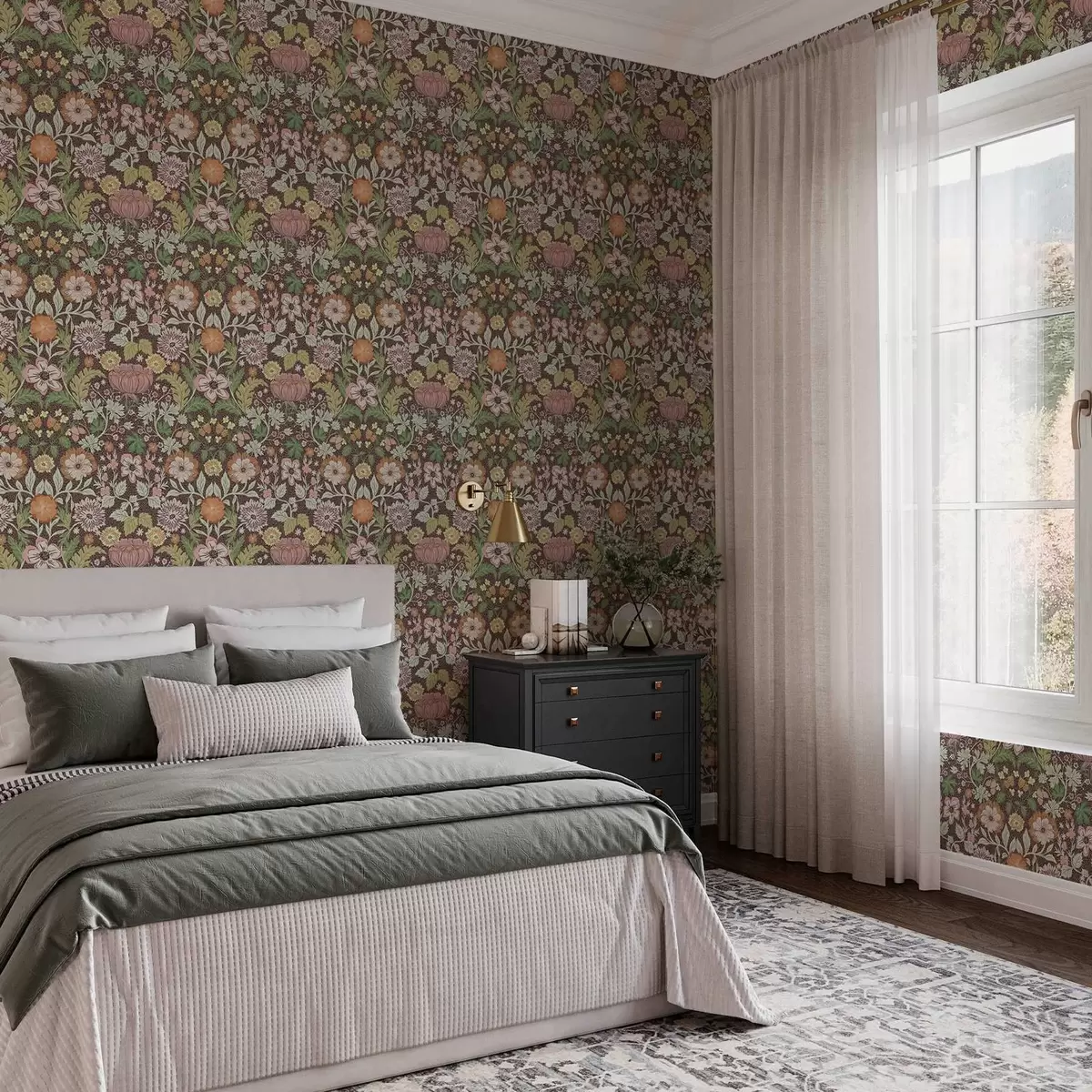 Шпалери Барвистий візерунок із зеленню та квітами Nr. a00145v3