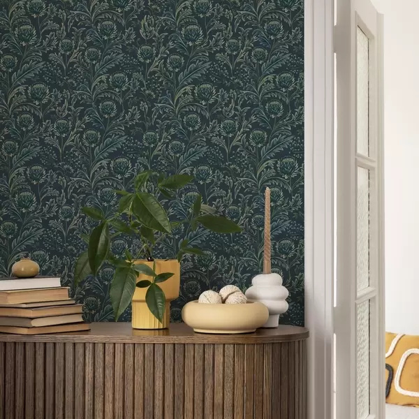 Шпалери Темно-зелений квітковий візерунок з артишоками Nr. a00186