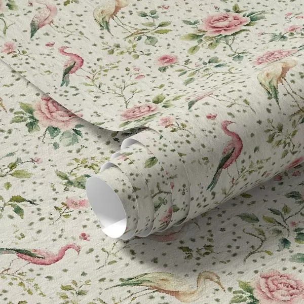 Шпалери Пастельно-рожеві троянди та птахи в стилі шеббі-шик Nr. a00201