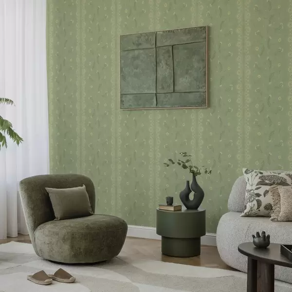 Шпалери Зелений фон з ромашками та мереживним краєм Nr. a00291