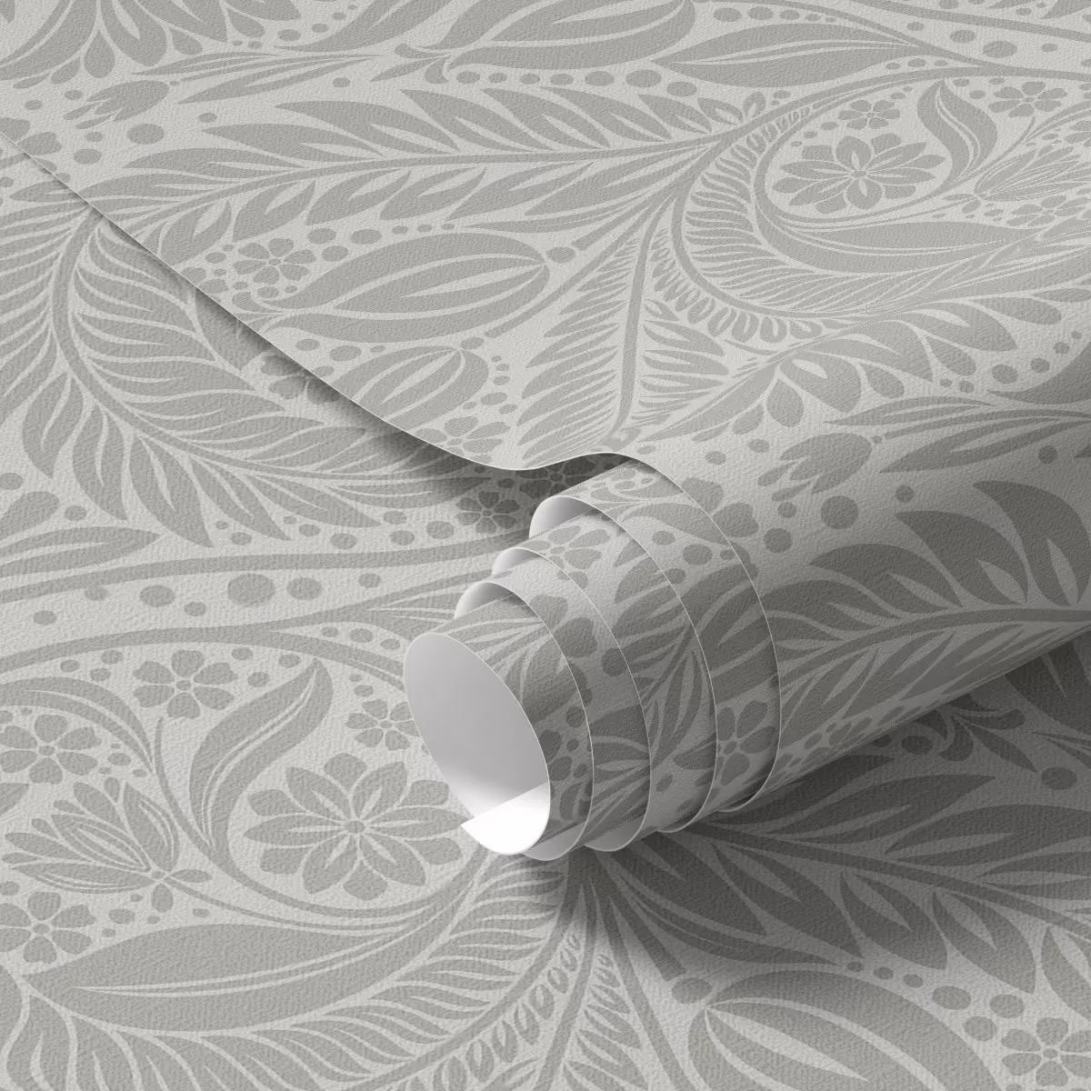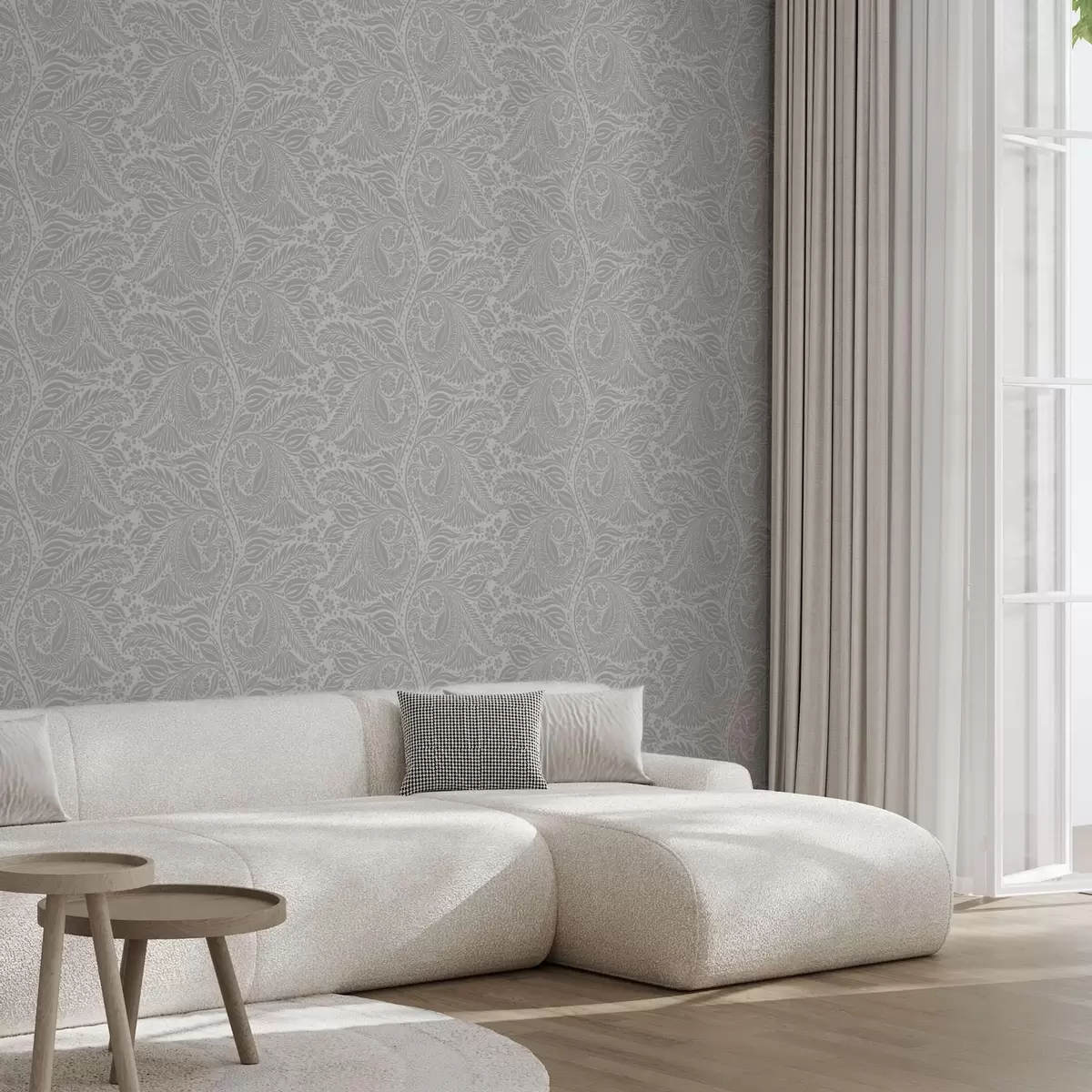 Шпалери Сіра фольклорна стилізація з листям і квітами Nr. a00301