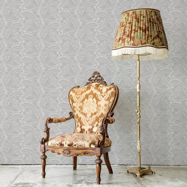 Шпалери Сіра фольклорна стилізація з листям і квітами Nr. a00301