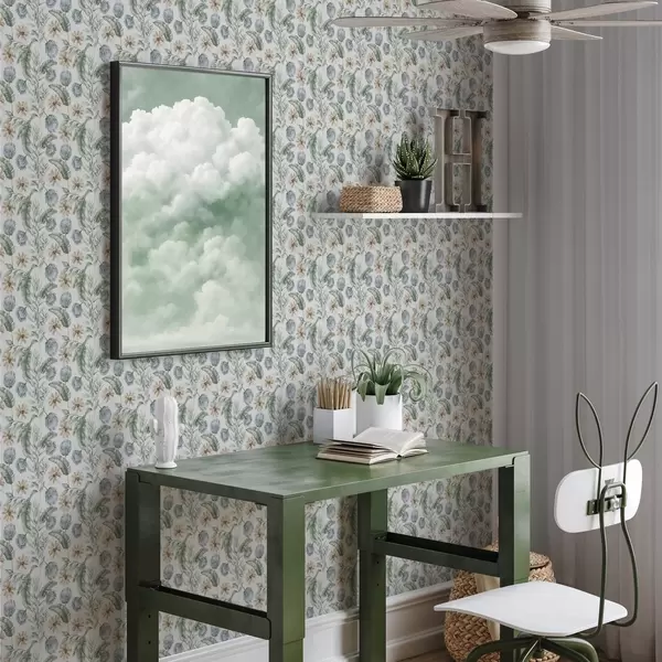Шпалери Ботанічний візерунок з артишоками та тропічним листям Nr. a00340