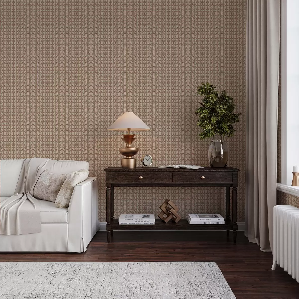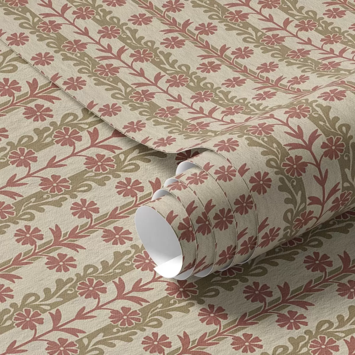 Шпалери Смугастий орнамент з червоними квітами a00341