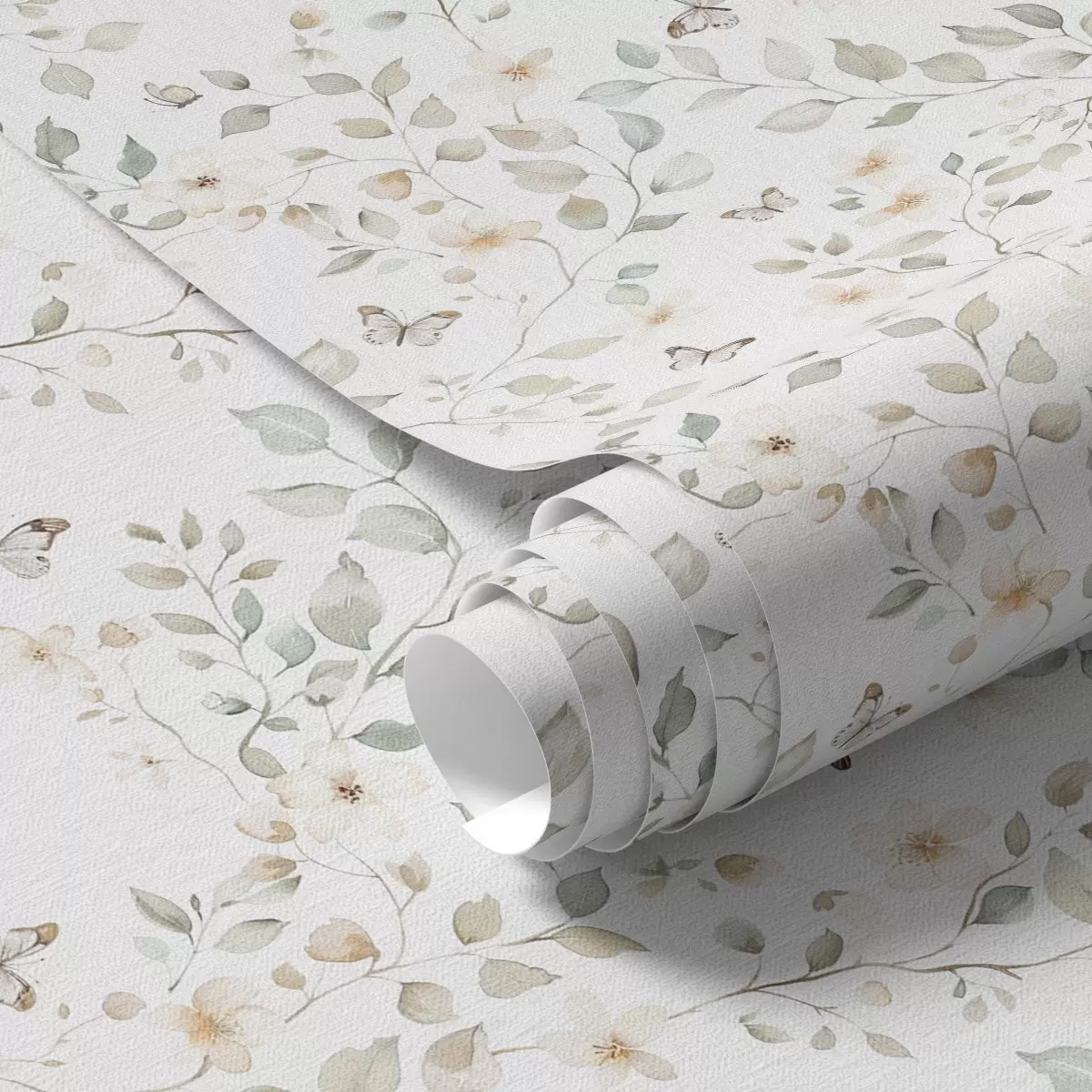 Шпалери Світлі гілки з листям і квітами в невеликих повтореннях Nr. a00343