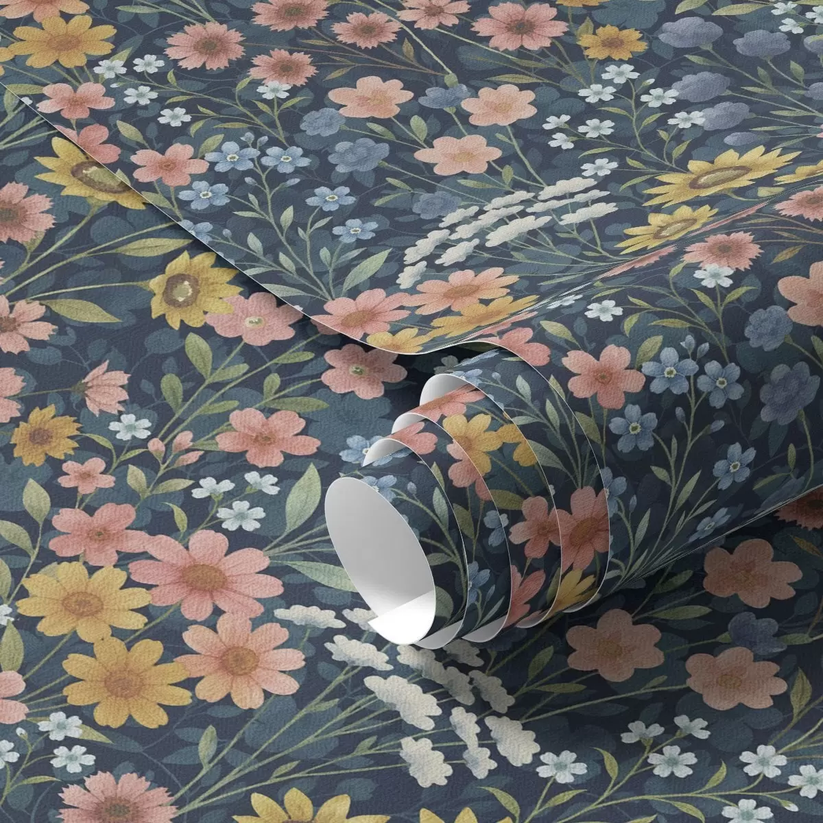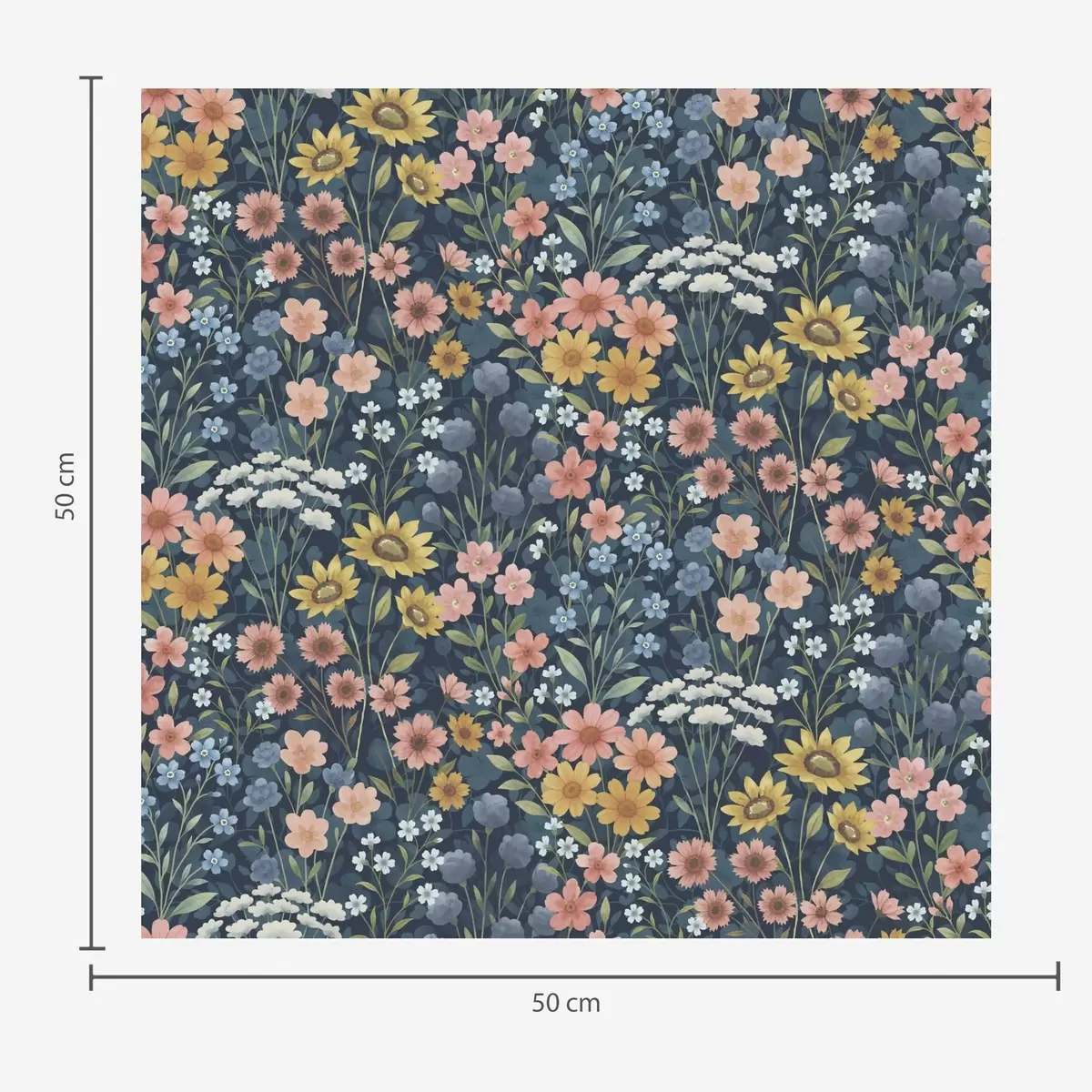 Шпалери Барвисті акварельні лугові квіти на темно-синьому тлі Nr. a00381