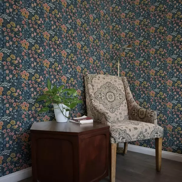 Шпалери Барвисті акварельні лугові квіти на темно-синьому тлі Nr. a00381