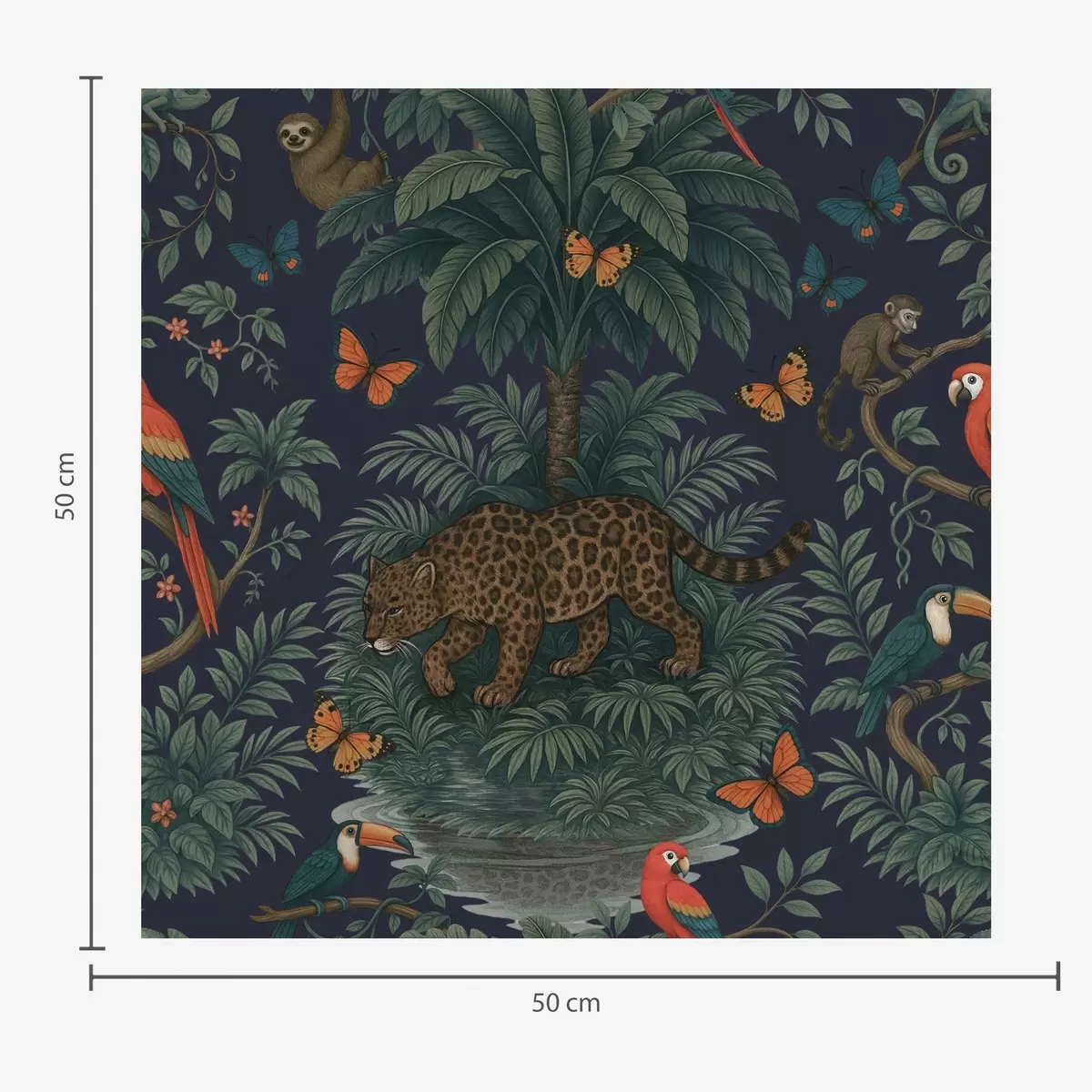 Шпалери Тропічні джунглі з леопардом, леопардом, папугами та метеликами Nr. a00388