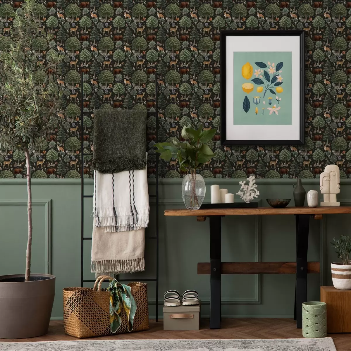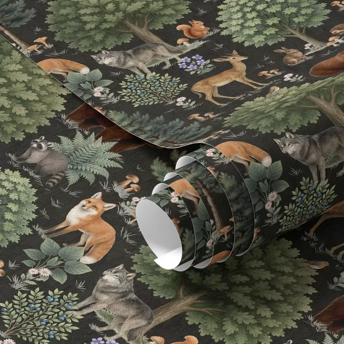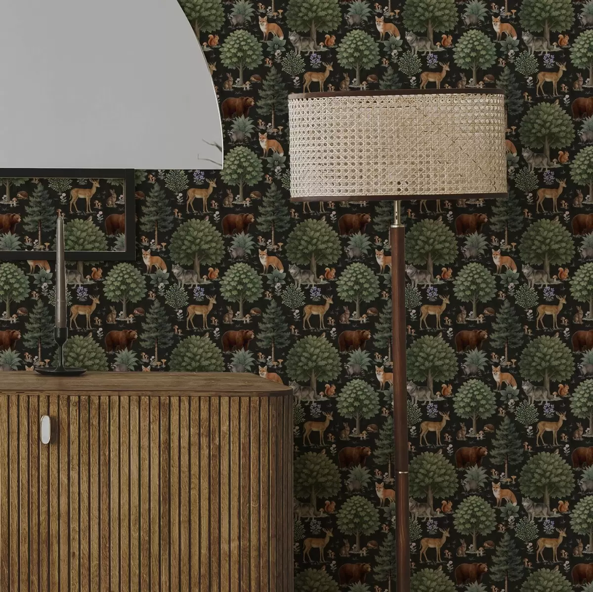 Шпалери Акварельні лісові тварини з деревами та грибами Nr. a00391