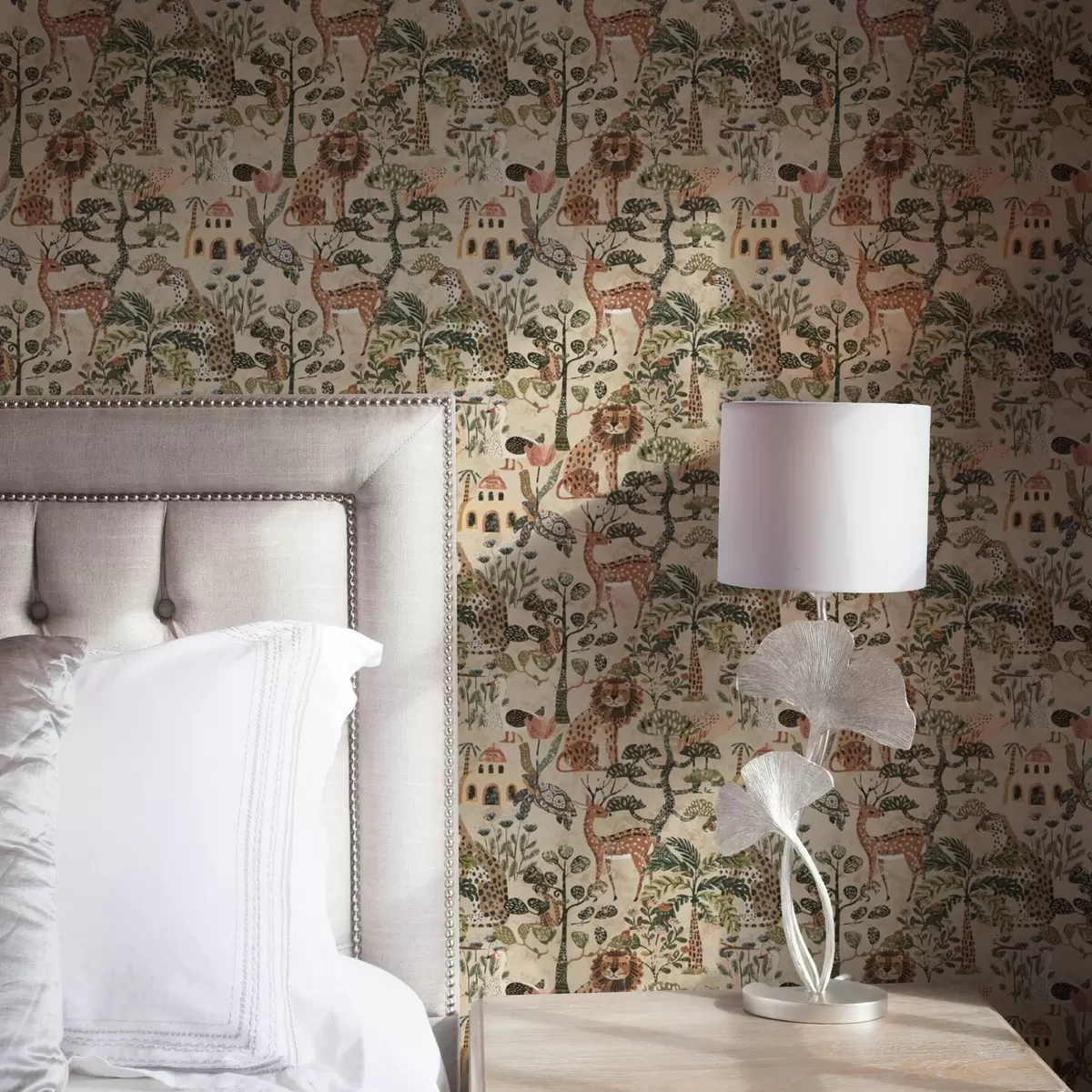 Шпалери Тварини сафарі та листя савани в теплих земляних тонах Nr. a00392