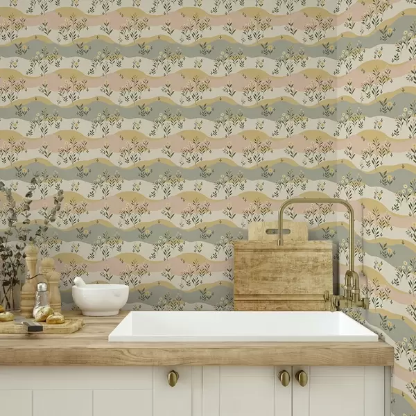 Шпалери Хвилясті лугові квіти в пастельному мінімалістичному стилі Nr. a00396