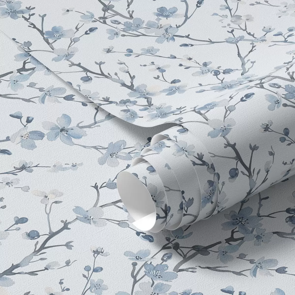 Шпалери Цвітіння блакитної вишні на білому тлі з м'яким контрастом Nr. a00399