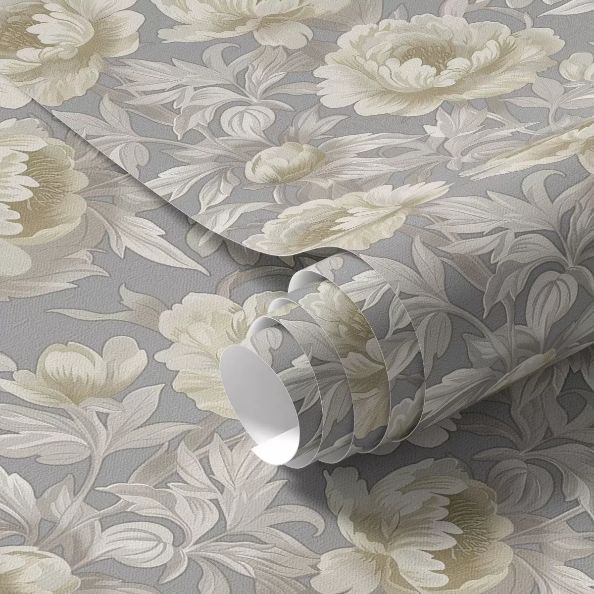 Шпалери Пишні півонії та листя на сірому тлі Nr. a00403