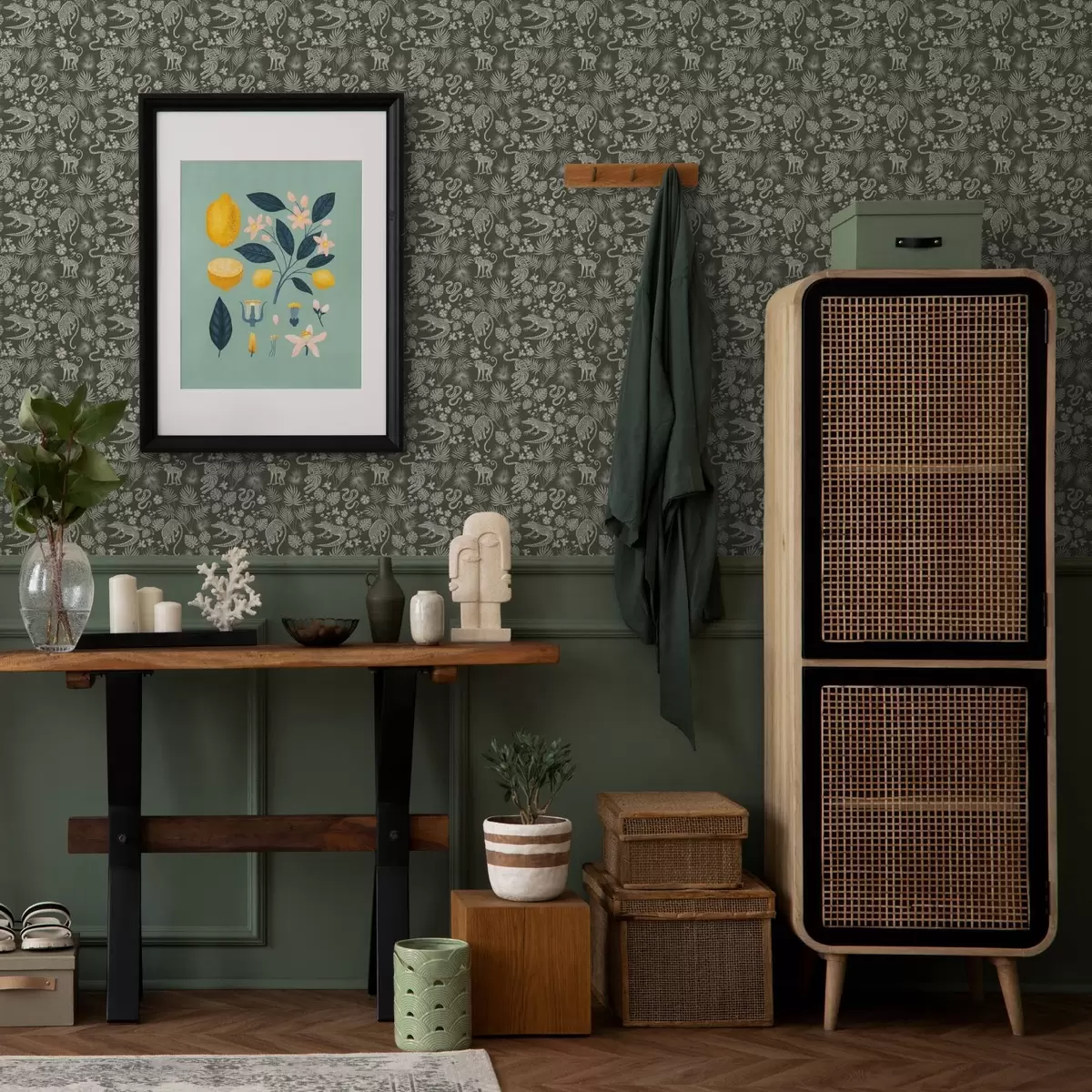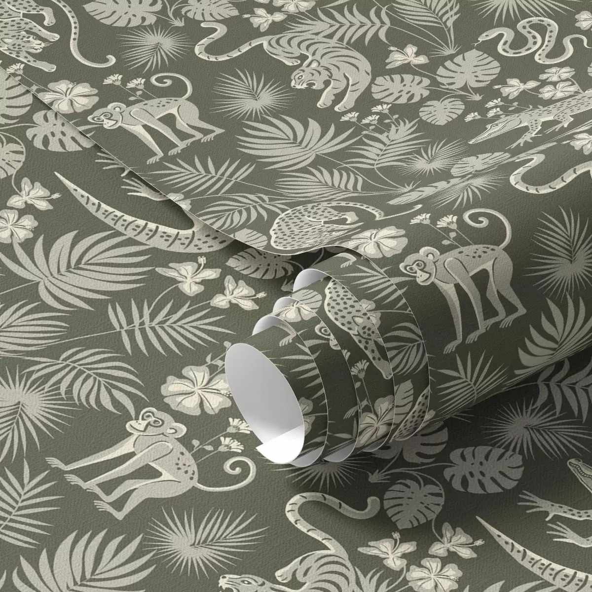 Шпалери Силуети диких тварин серед тропічного листя Nr. a00404