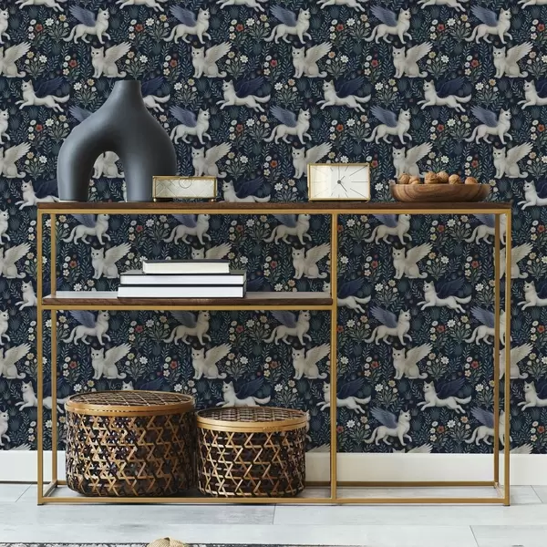 Шпалери Фантазійні коти з крилами серед квітів Nr. a00408