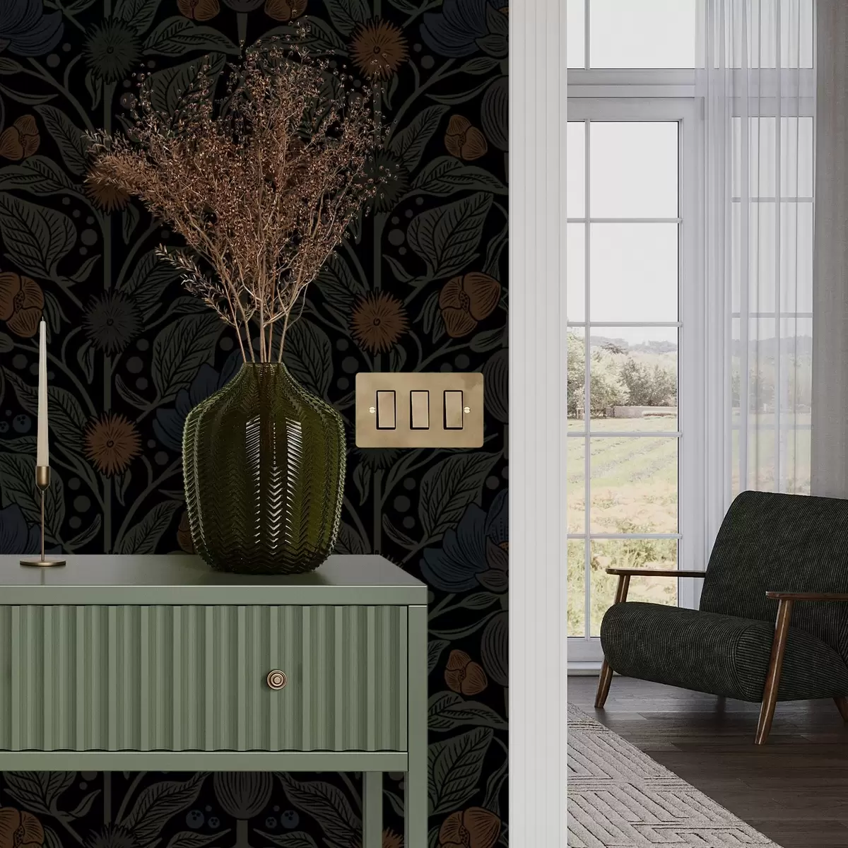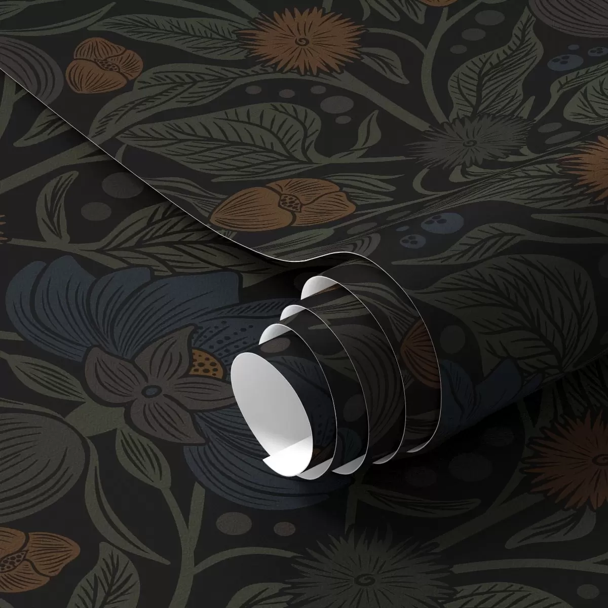 Шпалери Темний квітковий орнамент з помаранчевими акцентами Nr. a00411