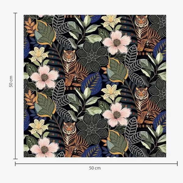 Шпалери Тигри серед яскравих тропічних квітів і листя Nr. a00426