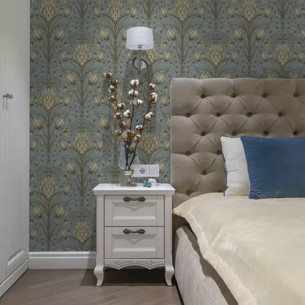 Шпалери Синій візерунок з артишоками та тюльпанами Nr. a00435
