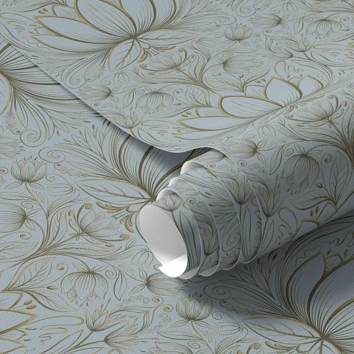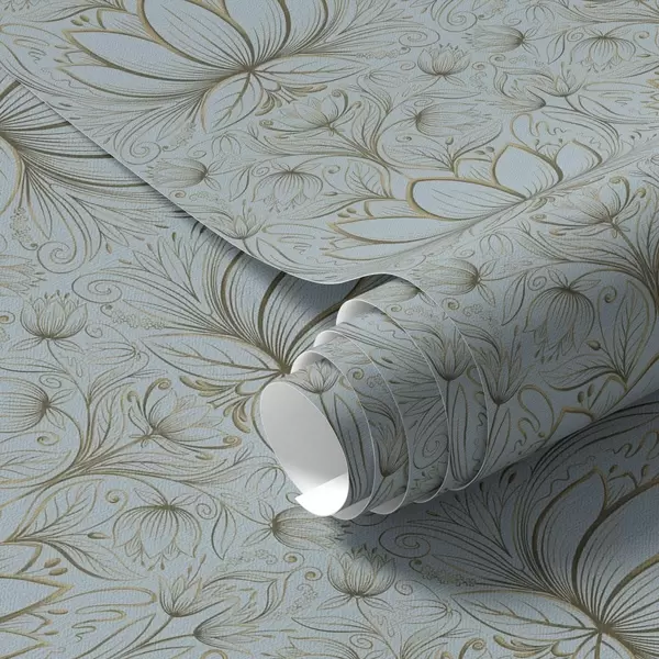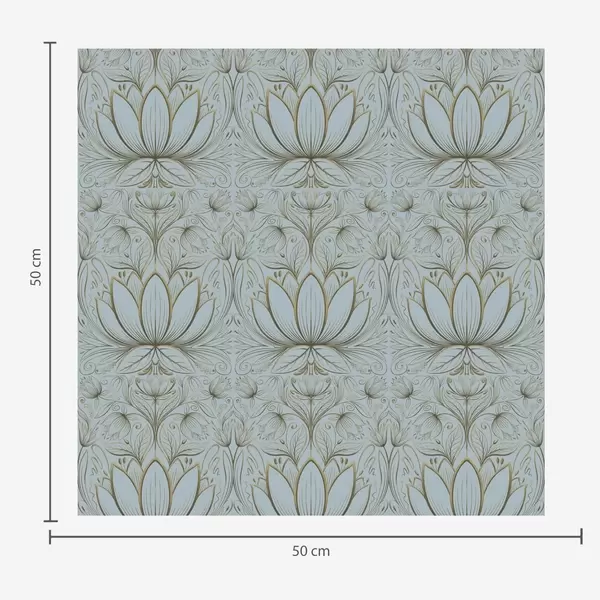 Шпалери Орнамент лотоса в бірюзово-жовтой гамі Nr. a00439