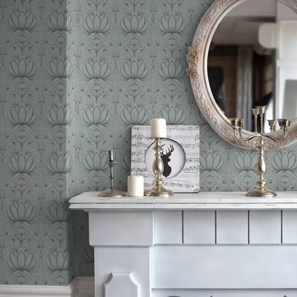 Шпалери Орнамент лотоса в бірюзово-жовтой гамі Nr. a00439