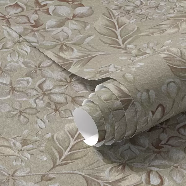 Шпалери Бежеві гілки з білими квітами в теплих відтінках Nr. a00441