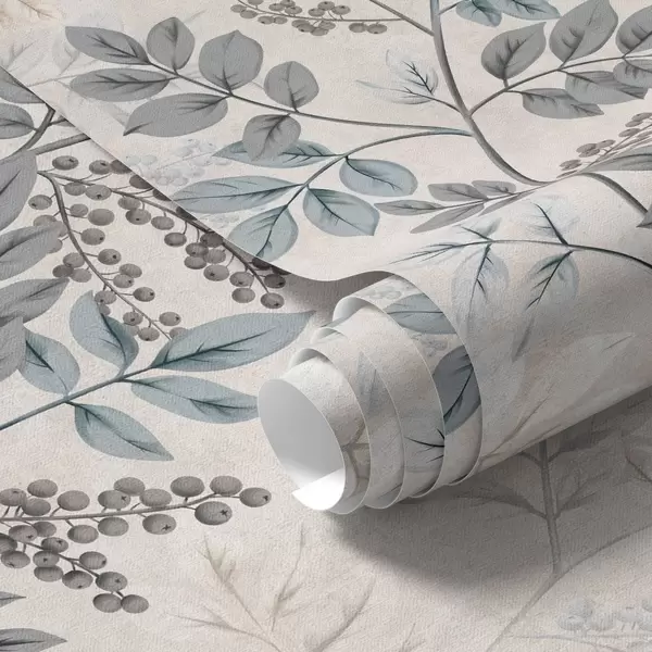 Шпалери Ягідні гілки в пастельних відтінках з сіро-блакитним листям Nr. a00443