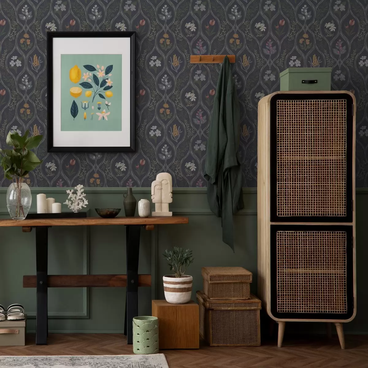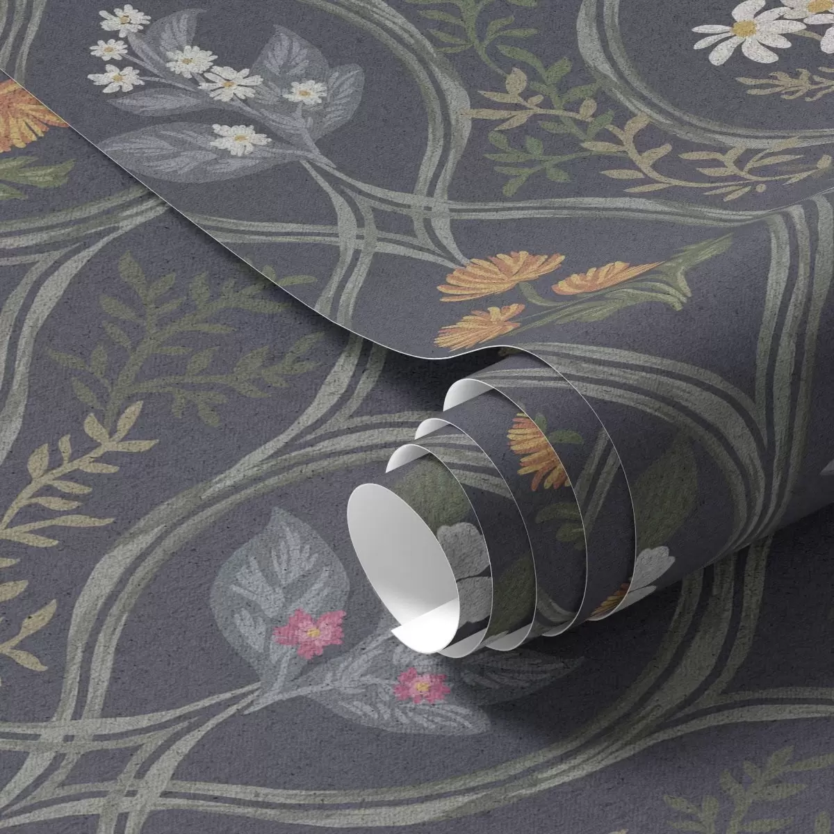 Шпалери Темна вінтажна рамка з барвистими садовими квітами Nr. a00454