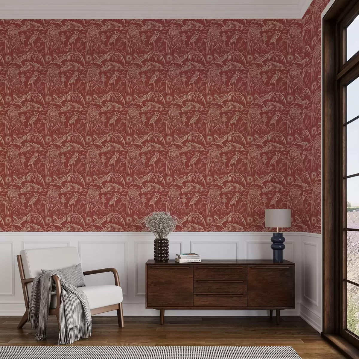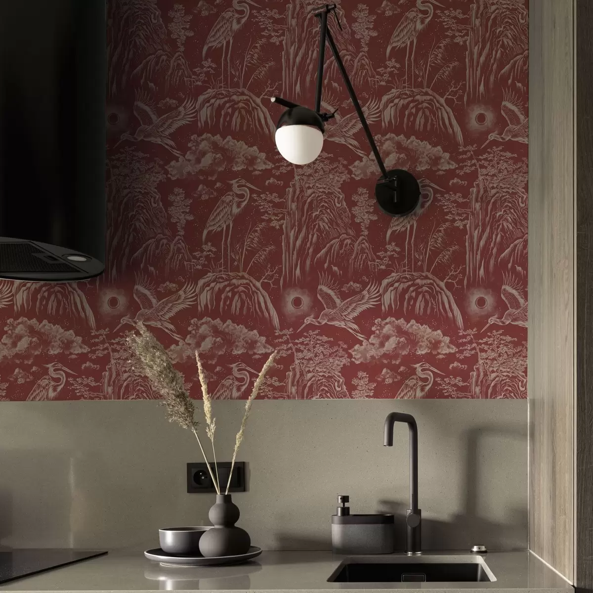 Шпалери Чаплі, гори і хмари в стилі японської гравюри Nr. a00458