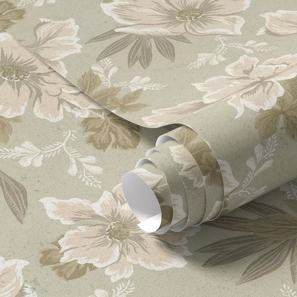 Шпалери Кремові квіти на оливково-зеленому тлі Nr. a00462