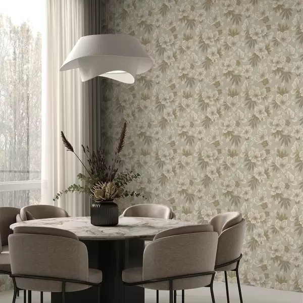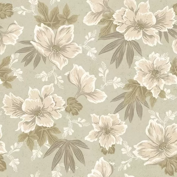 Шпалери Кремові квіти на оливково-зеленому тлі Nr. a00462