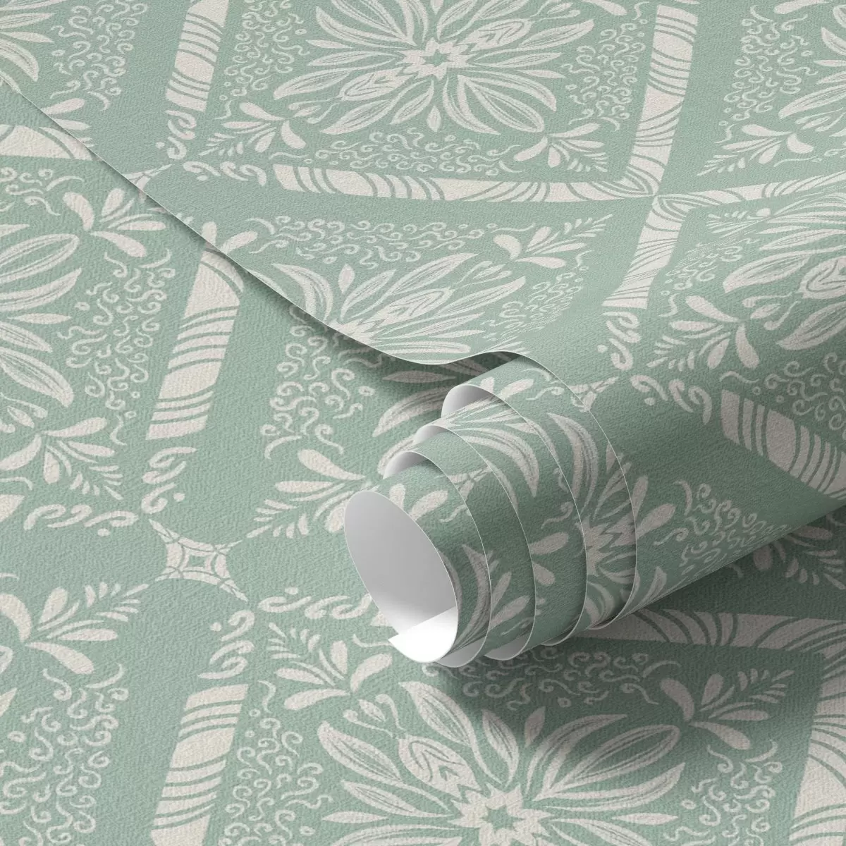 Шпалери Бірюзово-бежевий геометричний візерунок із завитками Nr. a00466