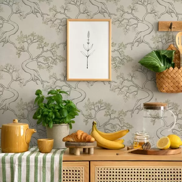 Шпалери Монохромні дерева з химерно вигнутими стовбурами Nr. a00468