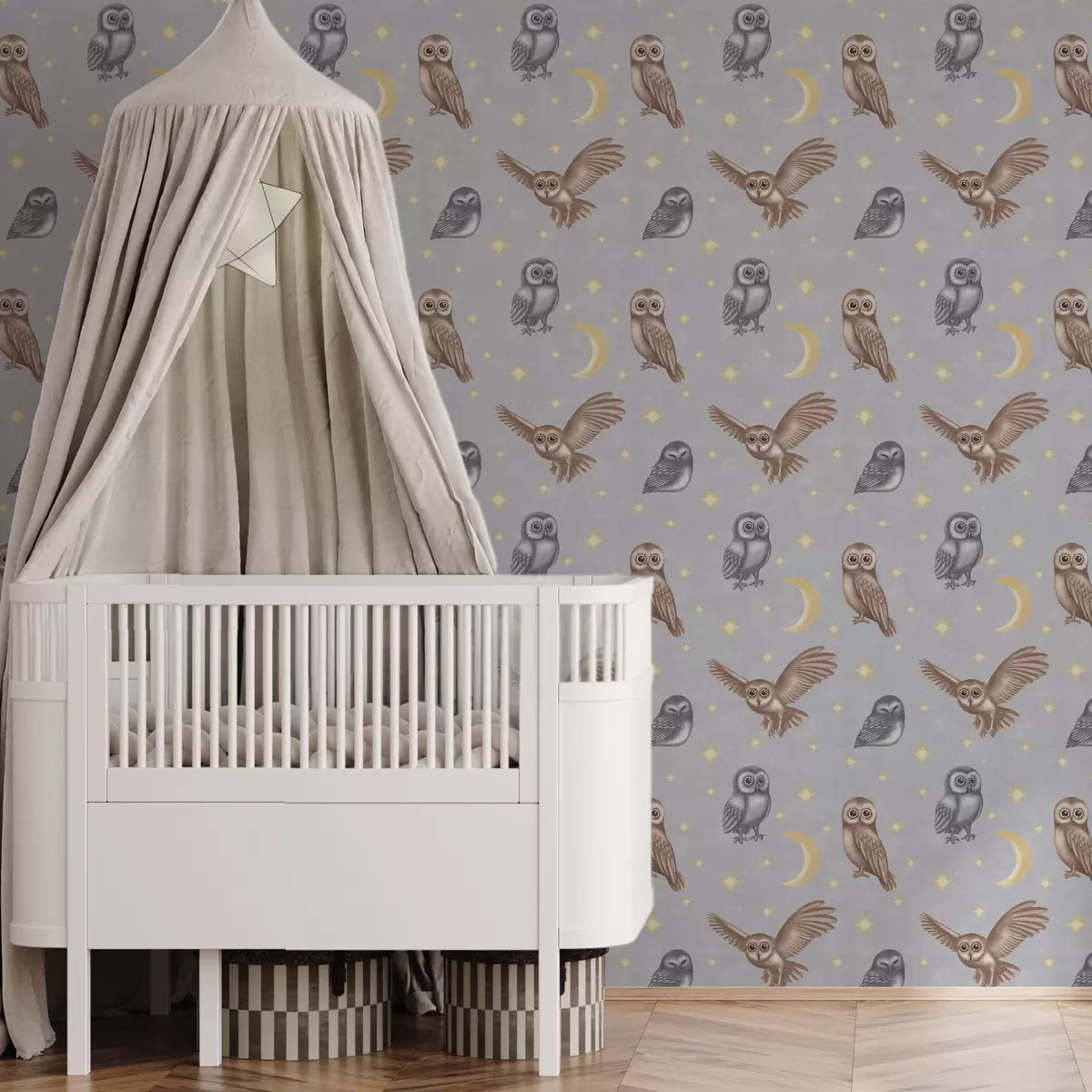 Шпалери Сови та зірки на тлі сірого нічного неба Nr. a00475