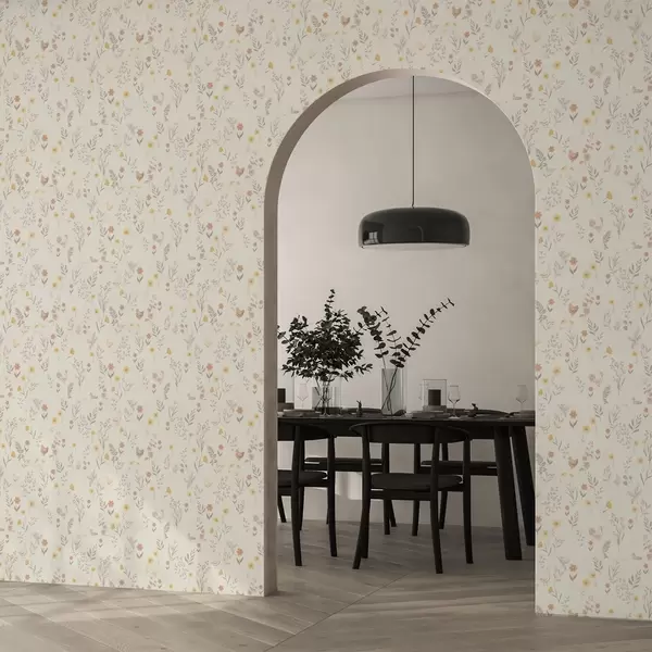 Шпалери Польові квіти та курчата в м'яких пастельних тонах Nr. a00478