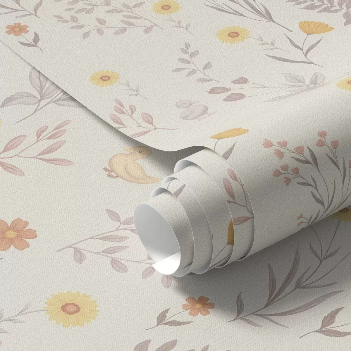 Шпалери Польові квіти та курчата в м'яких пастельних тонах a00478