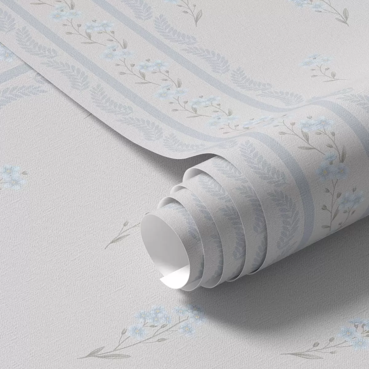 Шпалери Біле тло з блакитними квітами та декоративною смужкою Nr. a00484v1