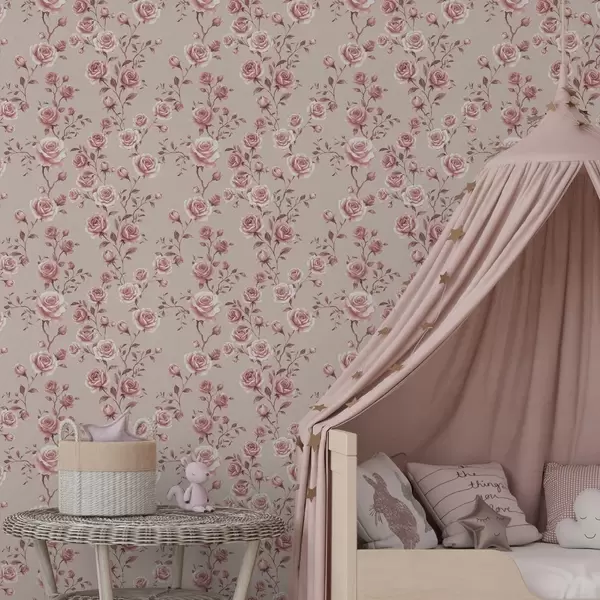 Шпалери Пудрові троянди на бежевому тлі — вінтажний візерунок Nr. a00497