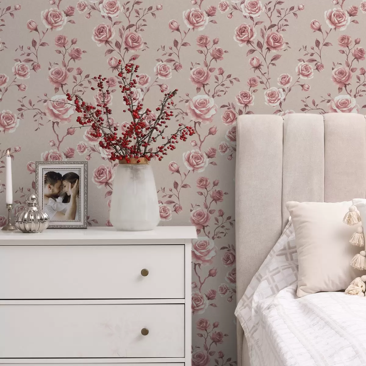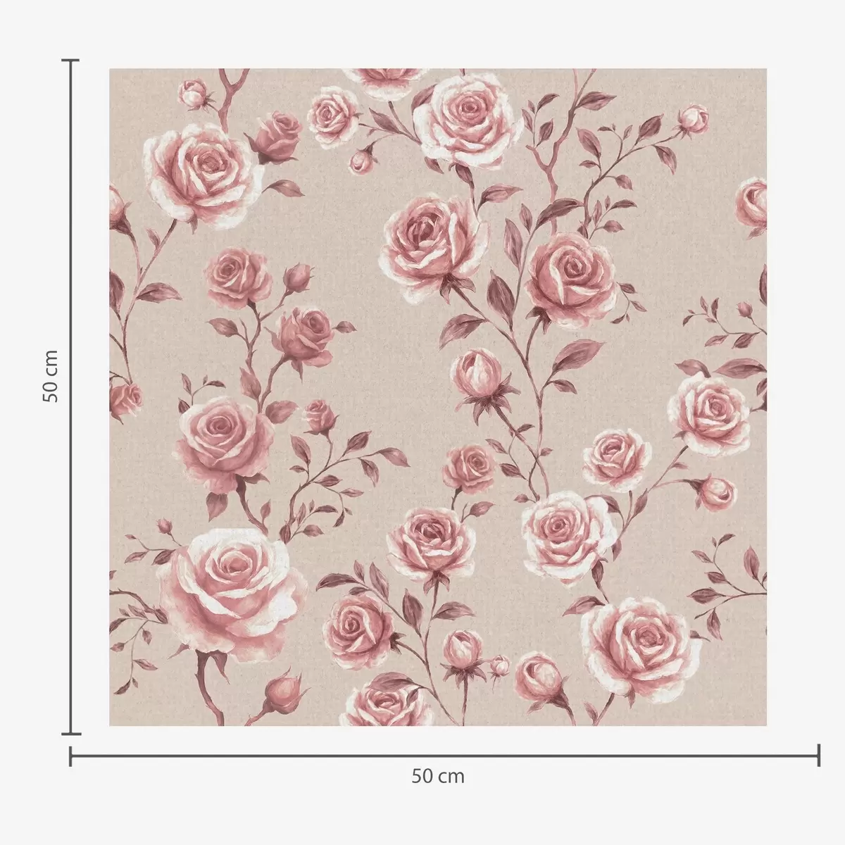 Шпалери Пудрові троянди на бежевому тлі — вінтажний візерунок a00497