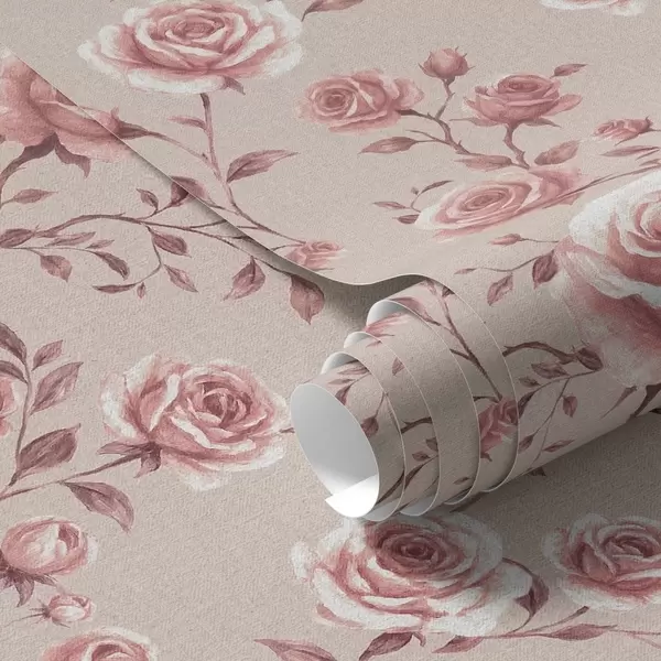 Шпалери Пудрові троянди на бежевому тлі — вінтажний візерунок Nr. a00497