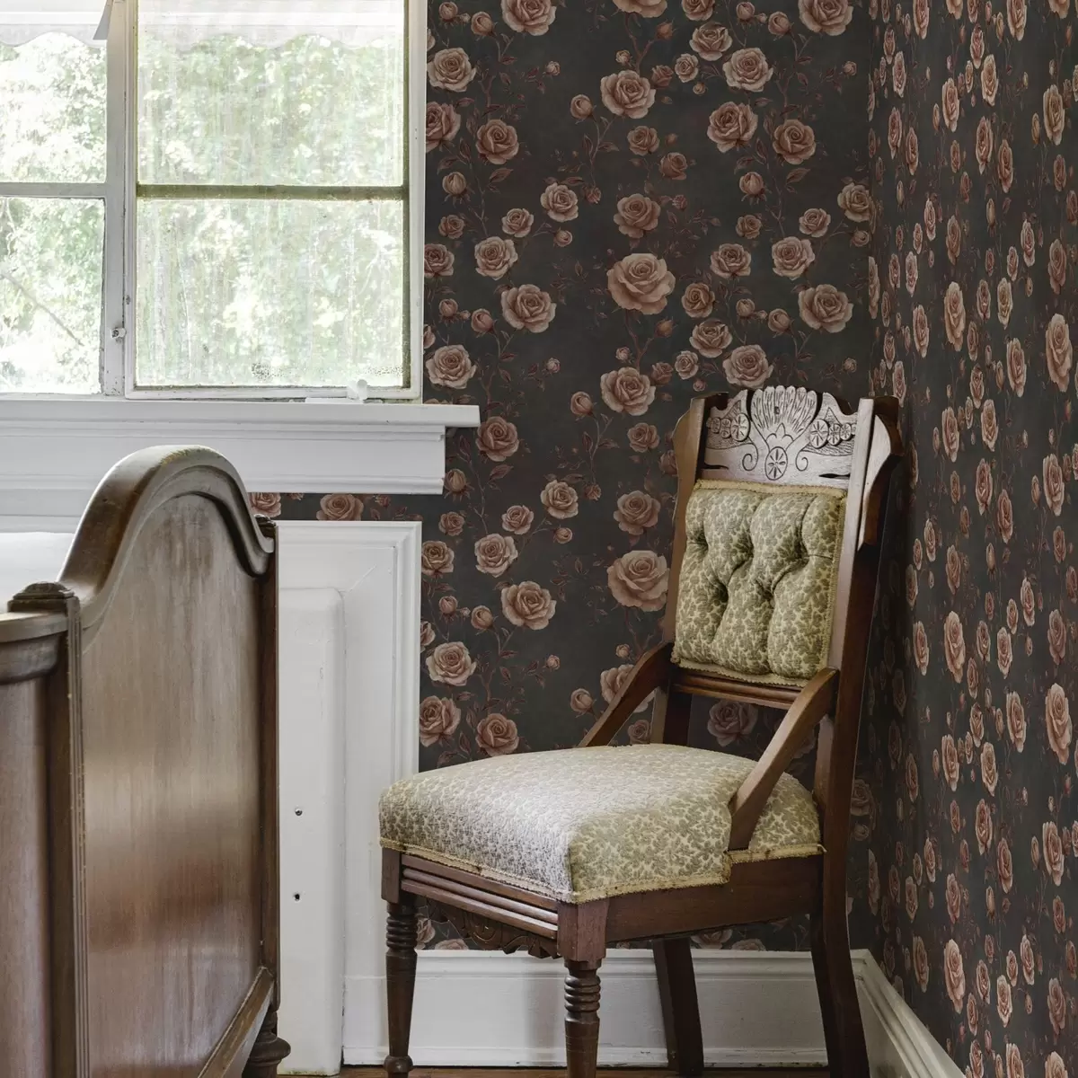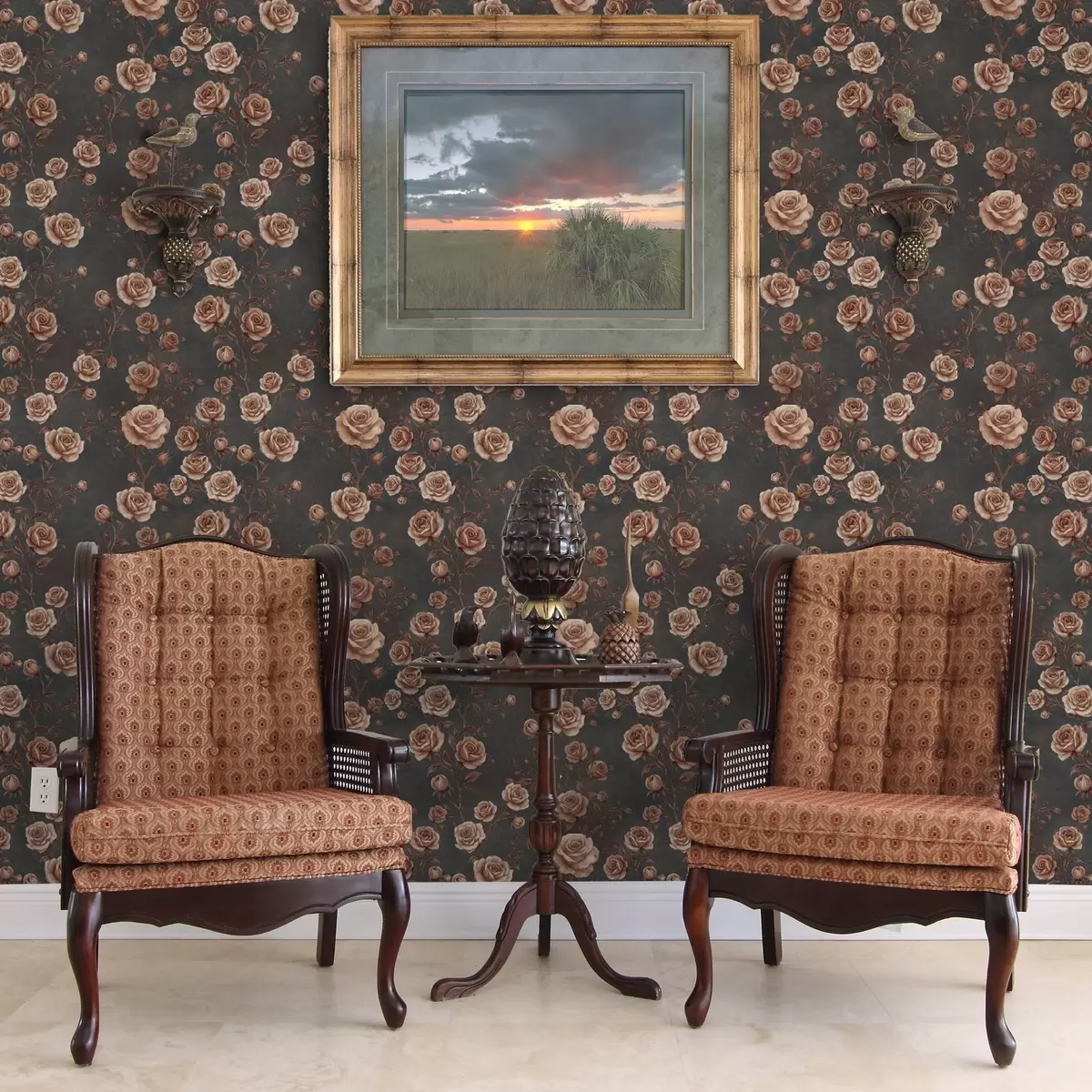 Шпалери Вінтажні троянди на графітовому тлі, теракотова палітра Nr. a00497v1