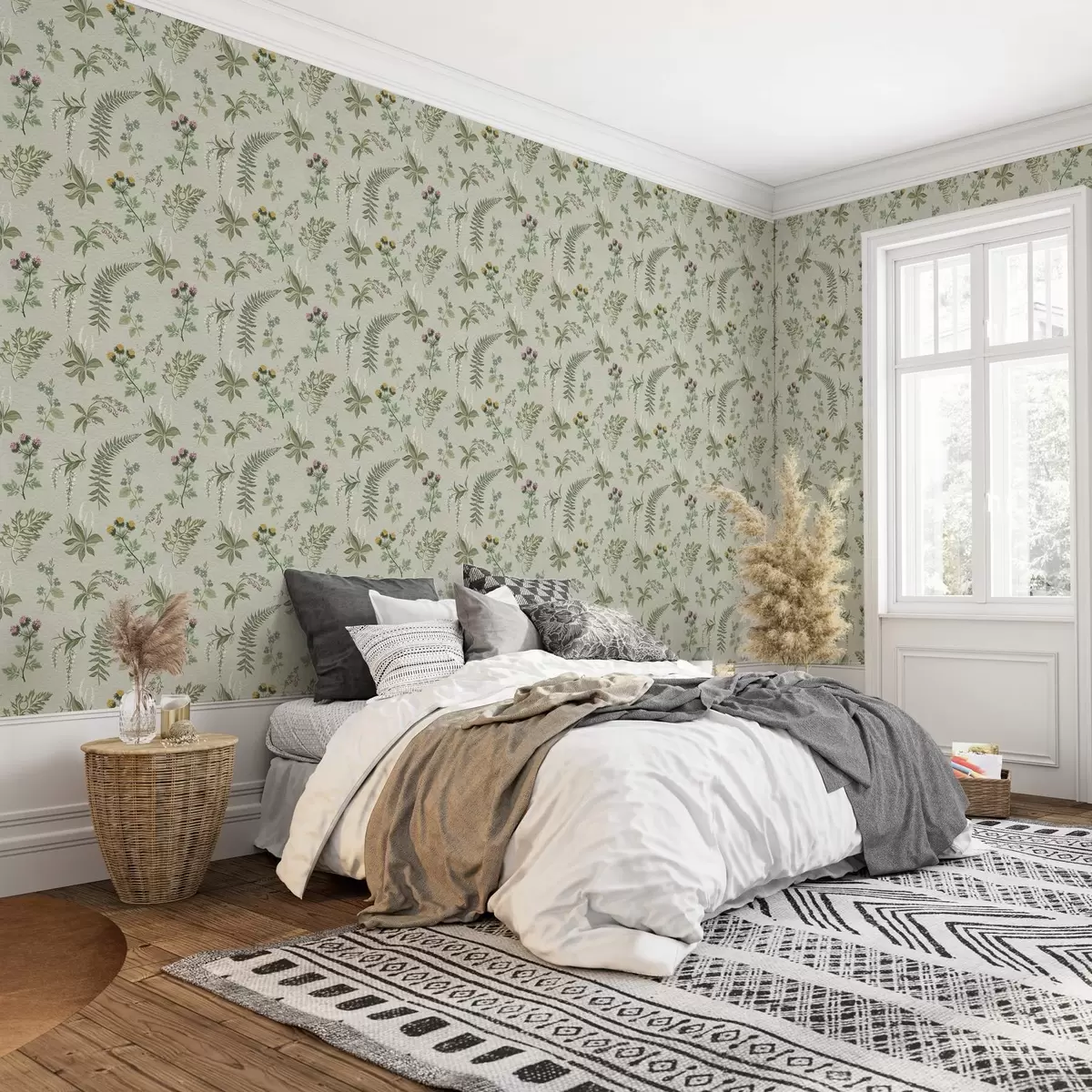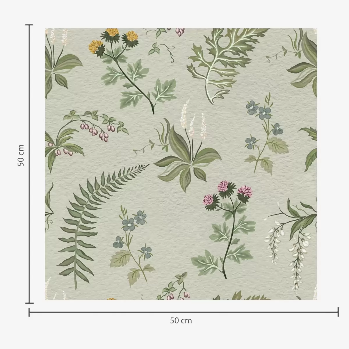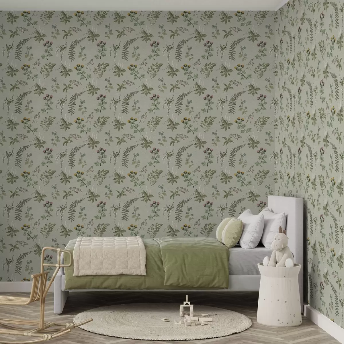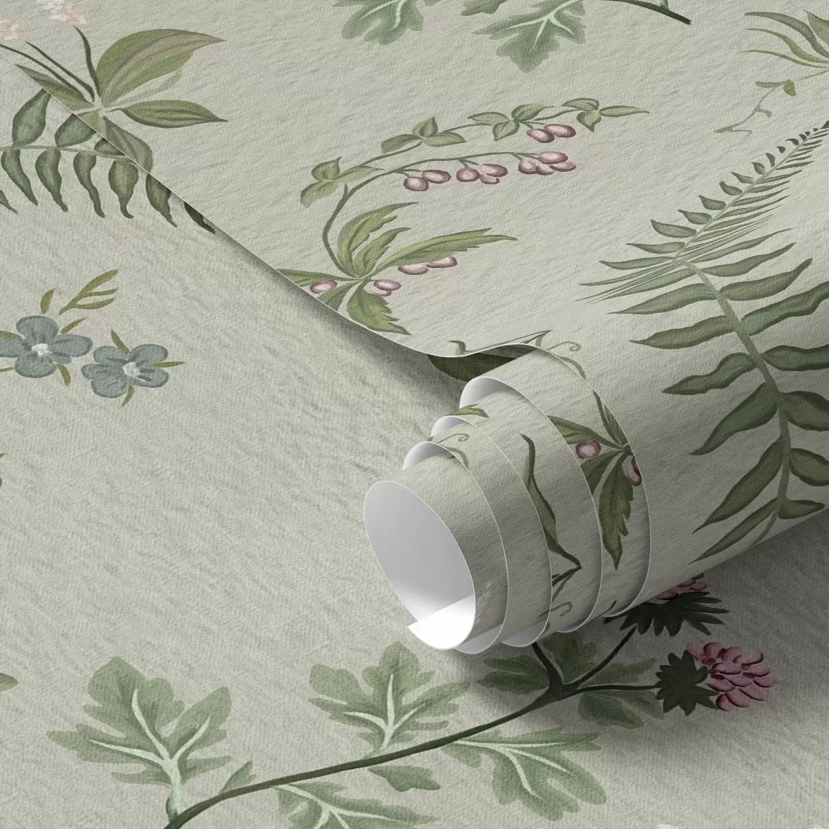 Шпалери Ботанічні трави та папороті на блідо-сіро-зеленому тлі Nr. a00498